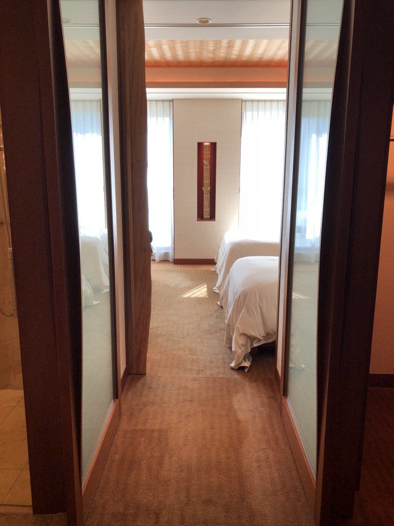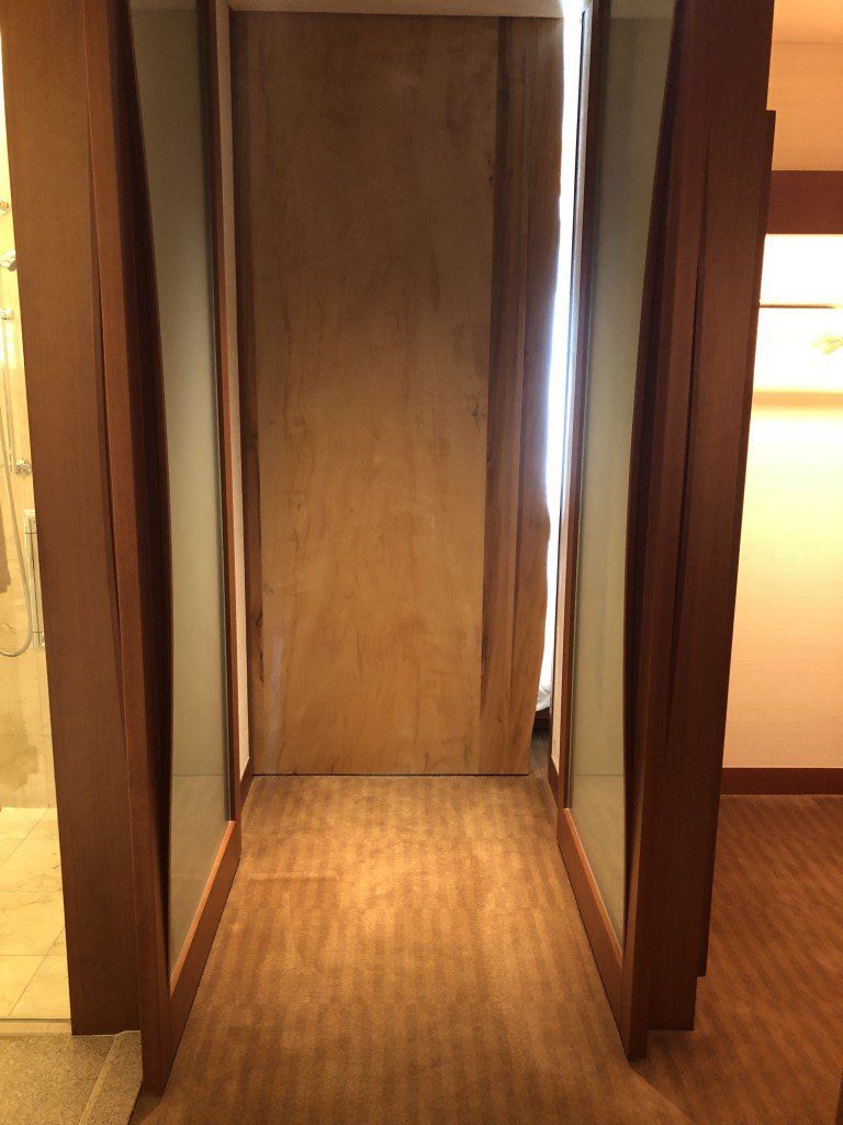 半島的格局幾乎都是進門後是走道,左右手邊分別是更衣室(行李架、化妝台等)以及浴室,先來看一下右手邊大器的更衣室,化妝台還蠻大一個的