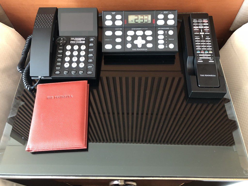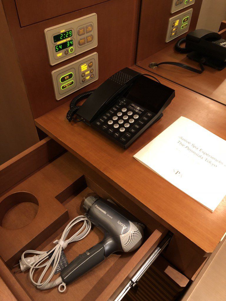 化妝桌旁有各式各樣的按鈕,也有吹風機及客房電話,半島的各種開關都很清楚也很多元XD