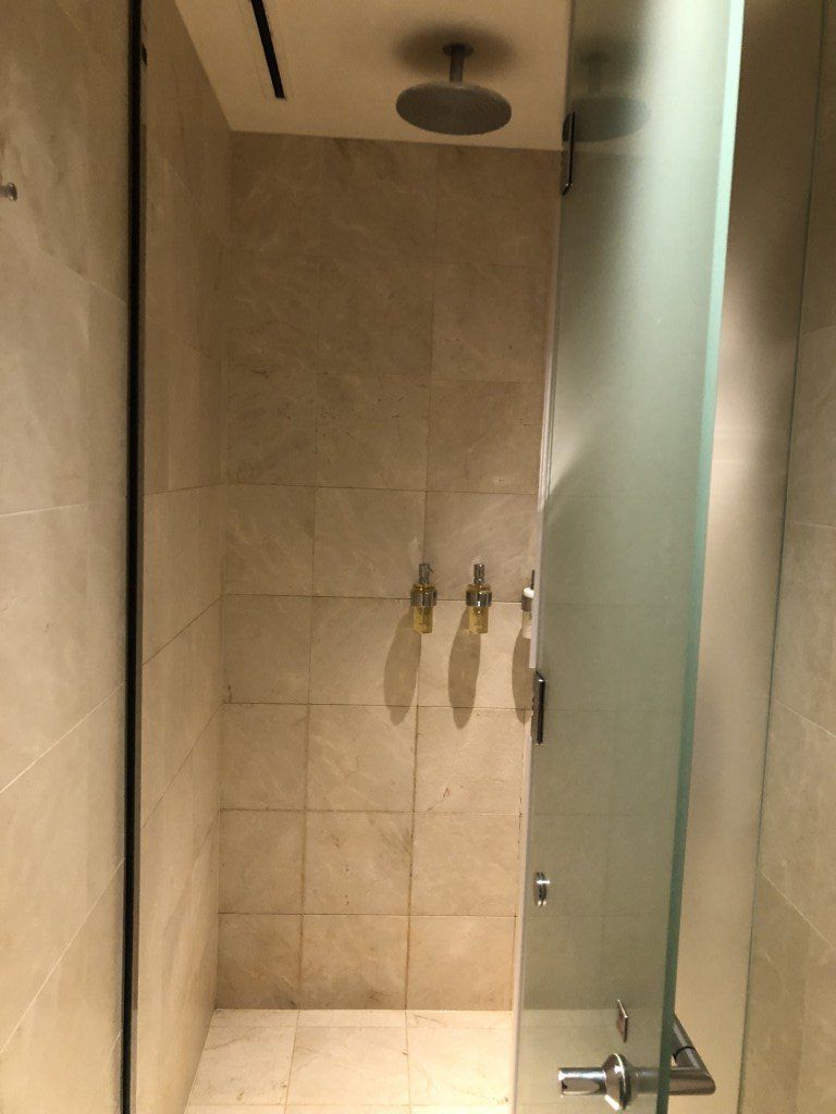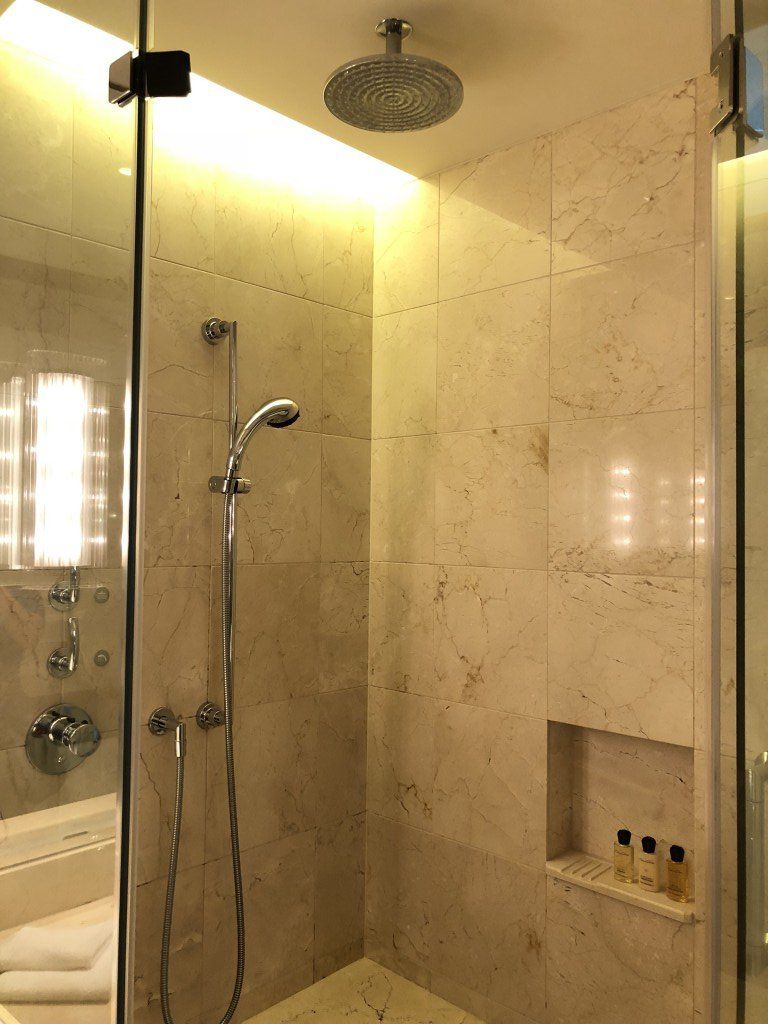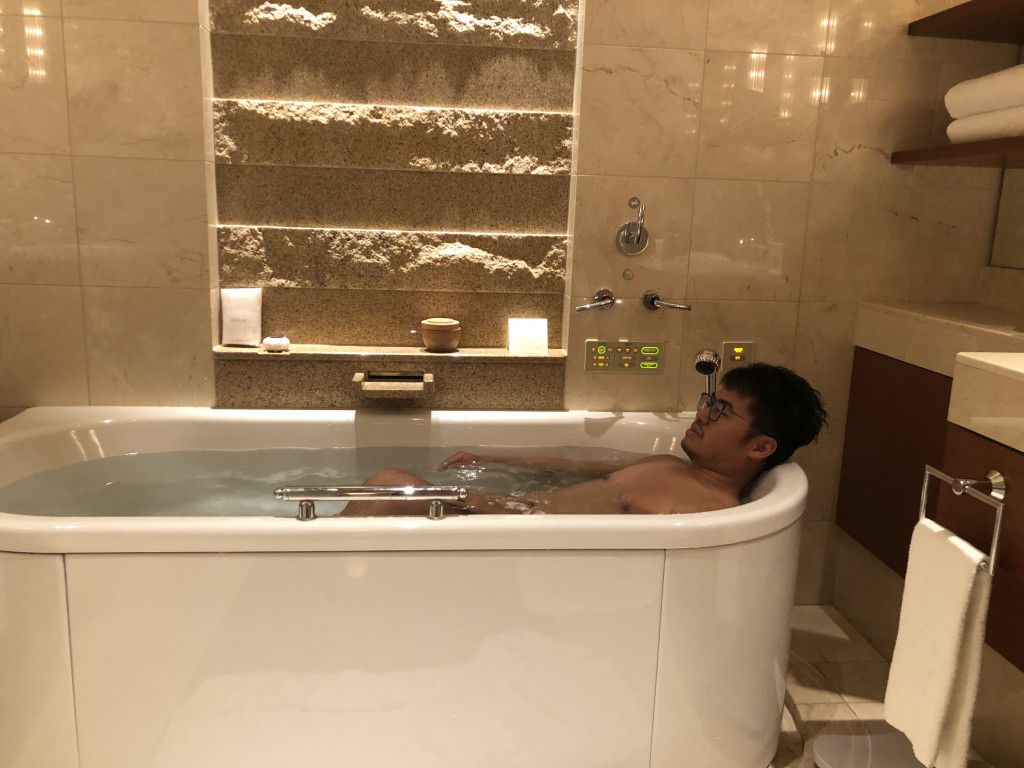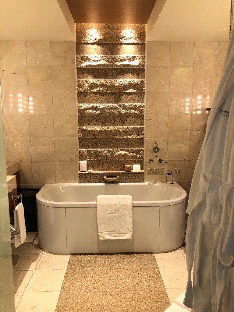 接著來看浴室區域,浴室完全遵循著半島一貫的風格,浴缸位於正中間靠牆,左右兩邊是洗手台,兩邊洗手檯旁邊則是淋浴區與馬桶