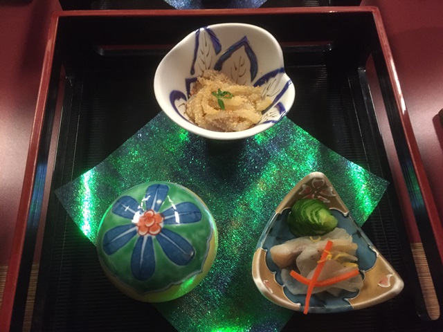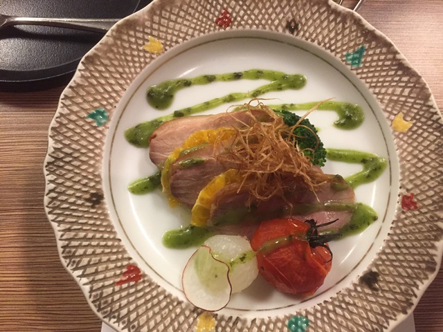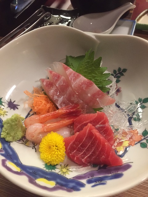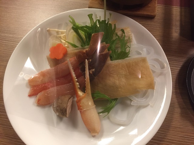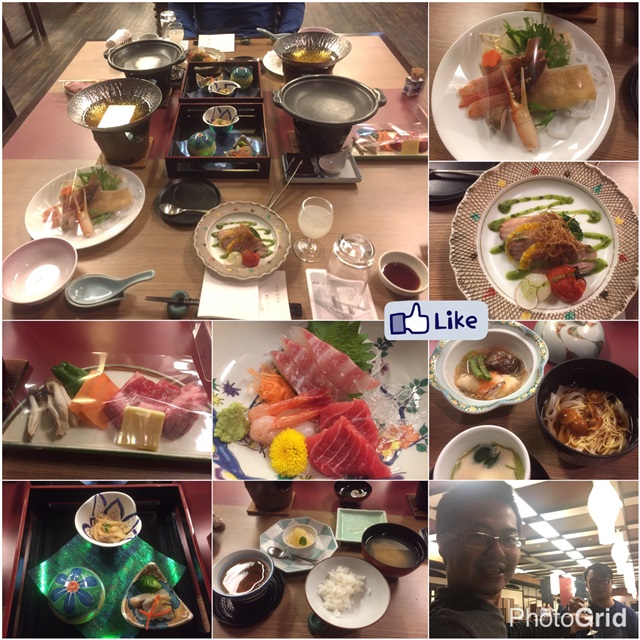 先來看看晚餐的菜單~好多道菜,小菜、生魚片、牛肉、鴨、蟹肉等等超豐盛的啦!