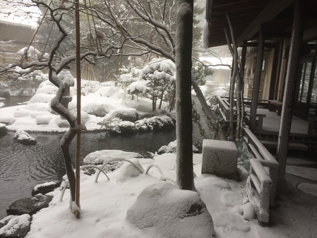 由於這次旅程是星期五與日住橘屋,星期六住萬國屋,因此要準備checkout了~checkout 前先坐在休息區,順便來看看庭院前的美景吧