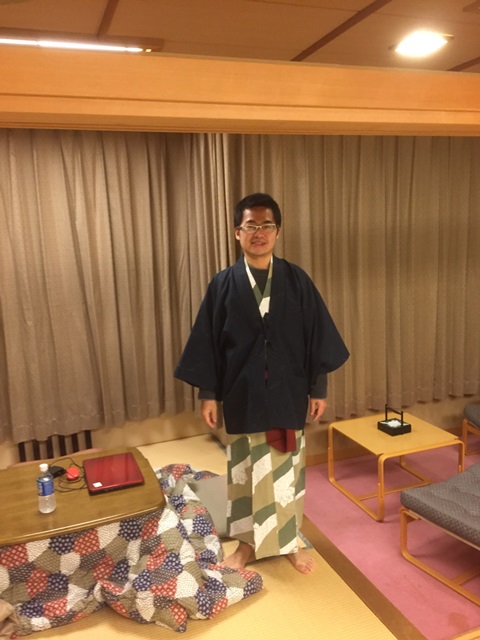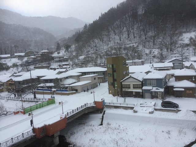 這趟我與好友David來到了日本東北來個小小泡湯之旅,搭的是遠航的班機,離開新潟機場後我們搭機場巴士來到了JR新潟站,接下來的目標就是溫海溫泉站(這次的飯店-橘屋就在溫海溫泉站不遠處,飯店位於鶴岡的湯田川溫泉九兵衛旅館距離,離溫海溫泉站站計程車約5分鐘車程),從JR新潟出發到溫海溫泉搭特急約1.5小時,普通車約2.5小時,我們選擇省錢的方式,不過因為大雪又delay了一小時@@,到溫海溫泉站我們打電話給飯店請他們協助接駁,因此就來到飯店嚕~按往例,先來個開心打卡組合照吧😏