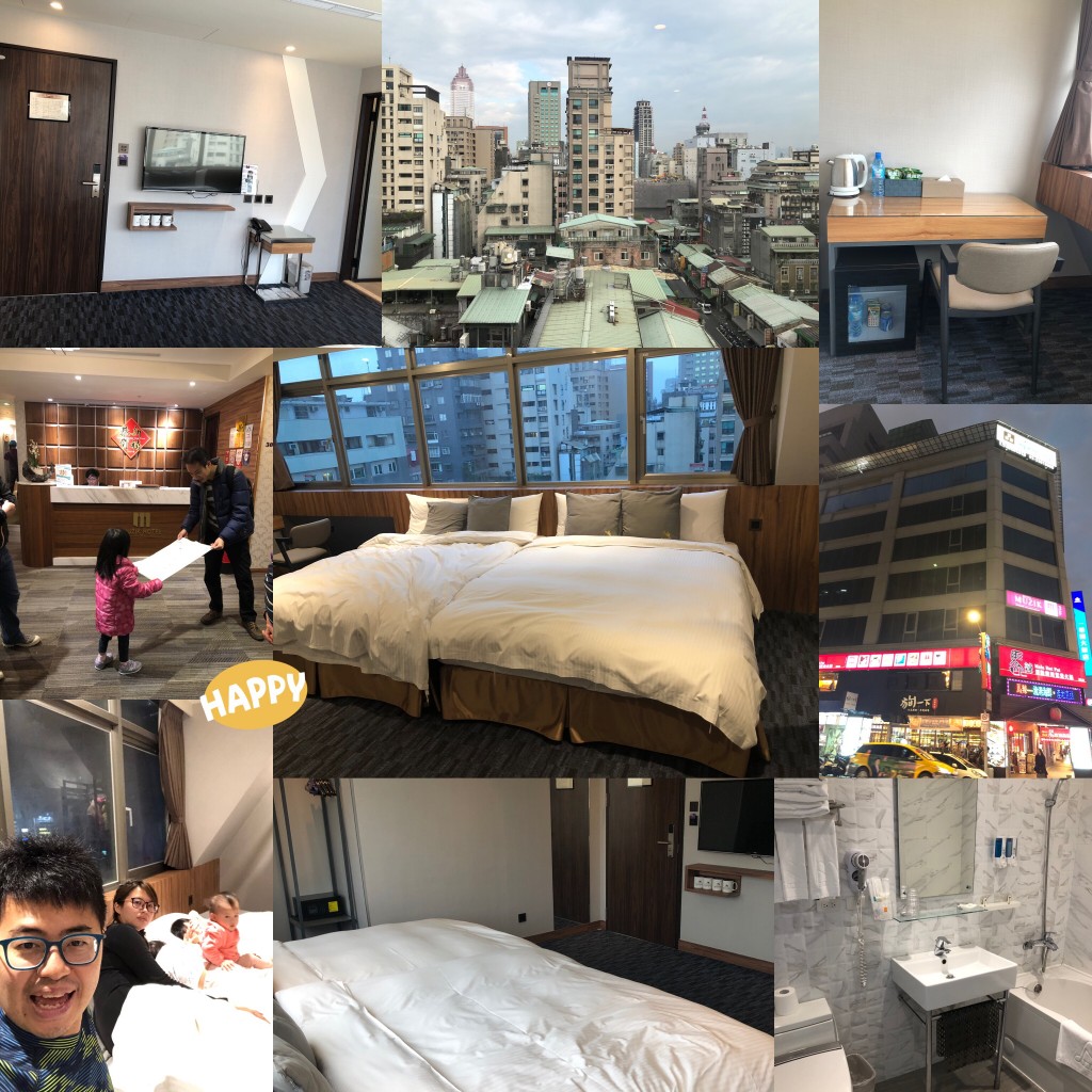 這次感謝好友偉士牌大大的推薦,使用補助來入住位於西門町的儷夏商旅啦,這次使用暖冬旅遊的補助1500扣完後入住飯店成本應該不到300,算是CP值很高的(還有兩張55元的早餐券)!儷夏商旅西寧館位於台北市中心西門町商圈,下樓即刻到達西門町徒步街區,搭捷運到西門站6號出口走路5-7分鐘內就會到飯店,飯店 於2019年TRIPADVISOR評選為旅行者之選全台平價旅店前5名,飯店也設有一間「露台市景房」,夜間可眺望台北街區夜景很不賴,這次我預定的是雙人房,不過很lucky的是被升等到兩中床還有浴缸的家庭房算是非常開心,房間大小約6-7坪,房內還有餅乾*4與飲料*4可供享用,房客晚上還可以到櫃檯領取泡麵*2,此外,還可以提前2小時入住或延後兩小時退房真是太棒了,因此就請傭人把三寶都帶來一起睡享受天倫之樂吧(印傭還是要回家睡啦XD),按往例,先來張開心打卡組合照吧^^