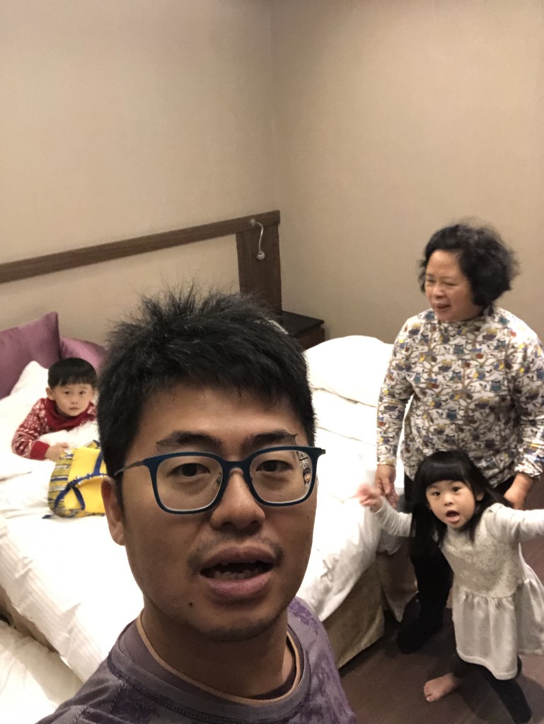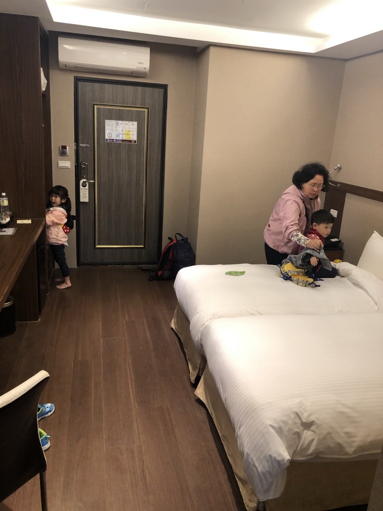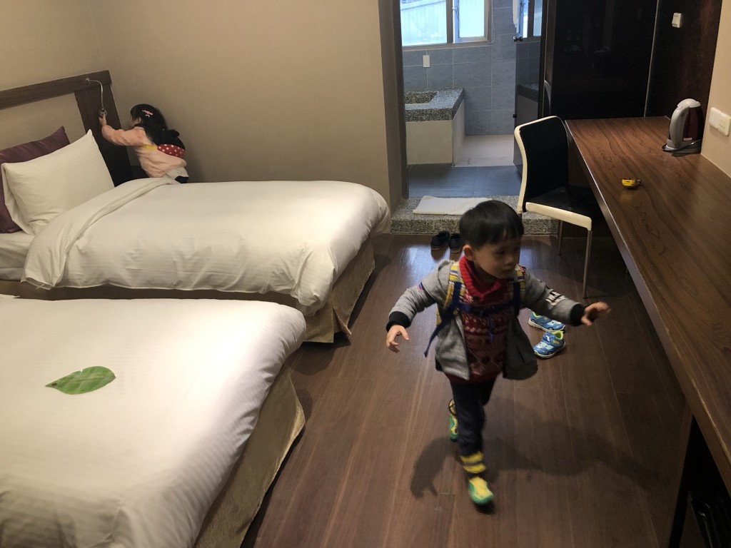 兩小床房型,每床寬度約100公分,睡我們兩大兩小是有點窄