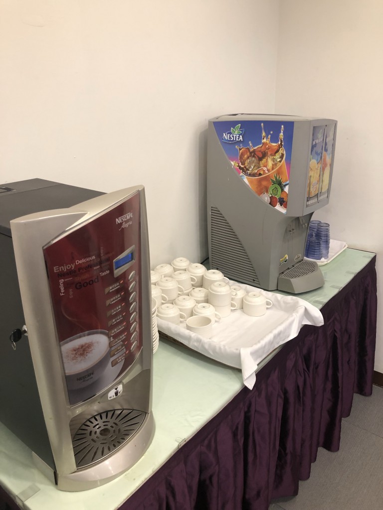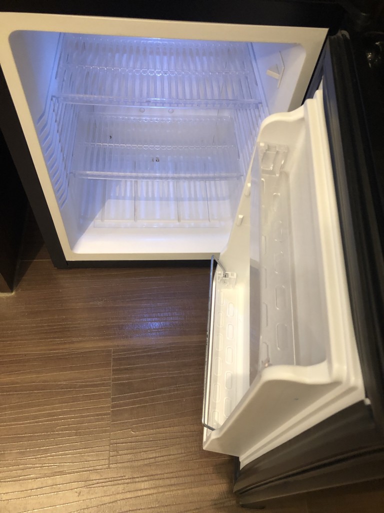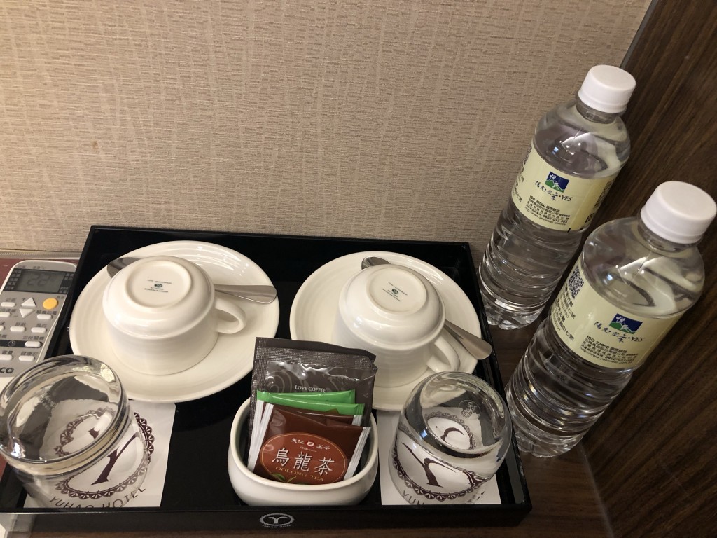 迷你吧上有兩瓶悅氏礦泉水、茶包以及咖啡包