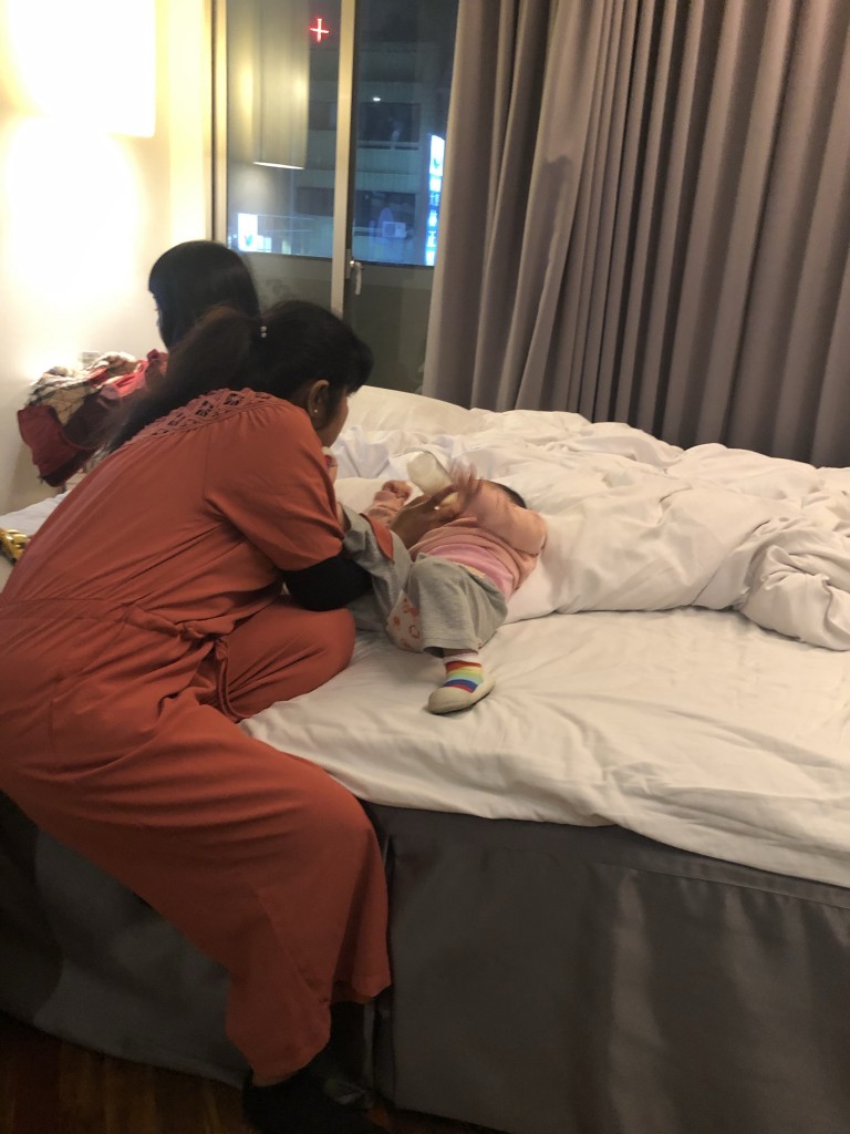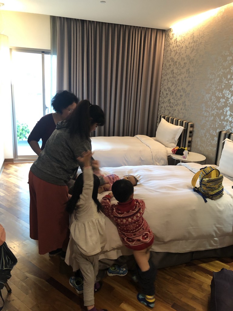 往門口方向一拍,三大三小塞一個房間很忙齁XD