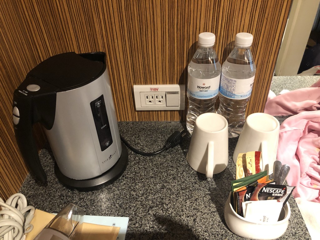 迷你吧一覽,有提供兩瓶礦泉水,還有茶包與咖啡包