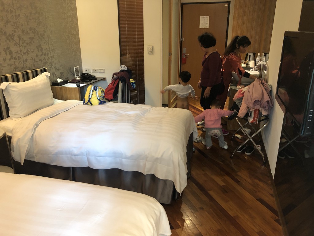 中午享用完午餐後,我們就到三寶到今日要入住的飯店-新竹福華飯店,新竹福華坐落於新竹市中心的精華商圈,基本上位置算是還ok,不過離火車站與市中心都還有一小段距離,從福華步行至新竹火車站約需 15 分鐘,距離新竹科學工業園約 6 公里,近年來新竹福華也正逐漸轉型成親子飯店,而且客房與餐廳也持續更新中,因此難得過年完住宿價格不貴,就帶三寶來體驗一下啦!下午讓三寶在福華遊戲室小玩一下就午睡了,午睡完帶媽媽與三寶享用鴨肉許-中正店,接著就讓媽媽及傭人帶雙大寶回板橋江翠,就留下小Cathy來與我跟Grace開心入住啦!今日入住福華低樓層經典房使用新竹市政府補助後只要2.6k-1.5k=1.1k含雙早不貴,房間似乎有稍微更新過還OK,不過經典房的小缺點是沒浴缸有點可惜,按往例,先來張開心打卡組合照吧^^