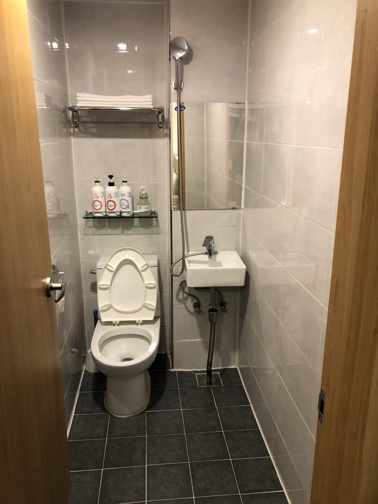 接著來看一下浴室的區域,整體還蠻乾淨整潔的,也有淋浴區可以沖澡