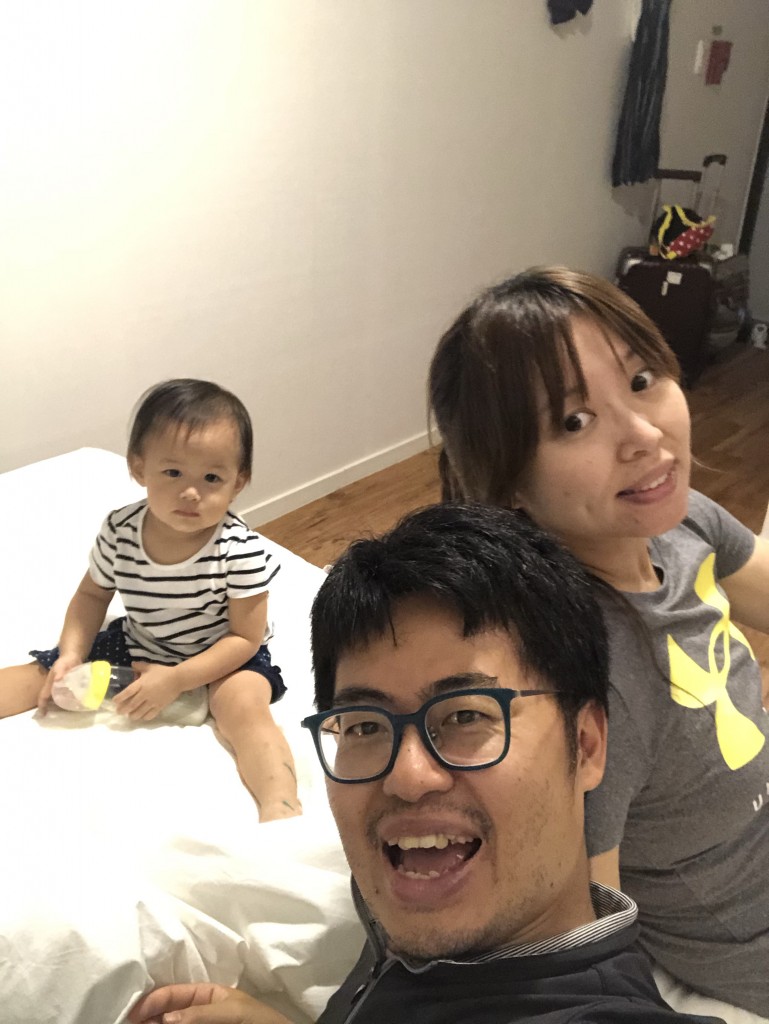 由於釜山航空大特價,加上剛好網路上收到釜山希爾頓飯店的住宿券,就與Grace兩人帶一歲多的小女兒Cathy來一次韓國釜山之旅啦!兩個大寶貝都還沒去過韓國結果小女兒就來了XD 對於很久沒帶一歲八個月的小小寶貝出國的我們也是一種挑戰,不過還是滿懷期待地出發啦!從釜山機場搭機捷到沙上站後(一人1400韓圜),再轉2號線到海雲台站(一人1600韓圜)走路1分鐘就來到今日入住的飯店-K-Guesthouse Haeubdae1啦,這次使用訂房網訂了這K-Guesthouse Haeundae1房價約1k不貴,飯店Lobby位於3樓,房間則為3、4樓,公共區域可以用餐、煮飯、洗衣(投幣10k韓圜)還有飲水機供房客飲水,房間約4坪舒適度還ok,之所以住便宜點的主要因為晚上才到飯店,當然就以舒適經濟為主啦!按往例,先來張開心打卡組合照給大家^^