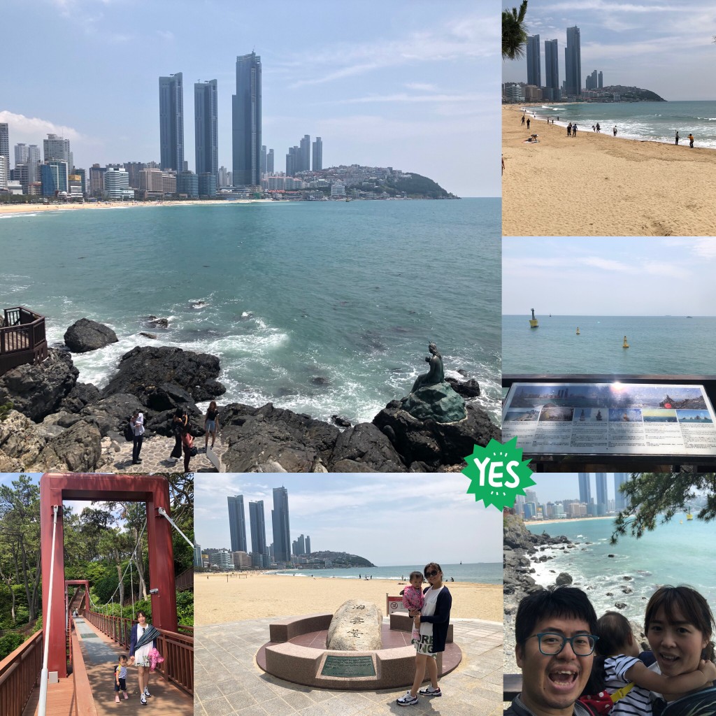 接著我們就出發前往海雲台走走啦~天氣好的海雲台也是非常美,我們從Westin旁邊的步道走往松柏公園,邊走步道邊吹海風很不錯!
