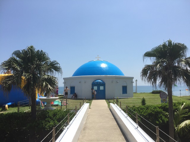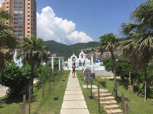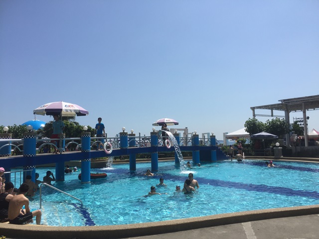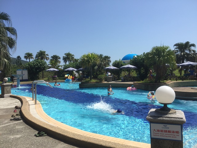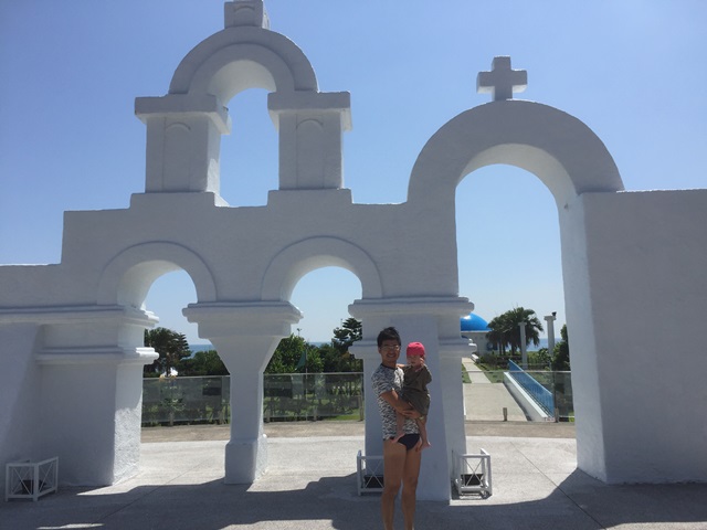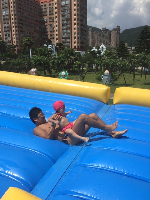 接著由於天氣太熱老婆不想曬太陽,就由我與士偉大帶茉莉花到「夏日樂園」來玩玩,太平洋翡翠灣房客免費喔!今日天氣超好,不過也超熱…進門拍一下