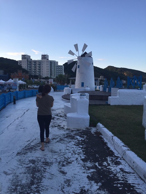 要到太平洋翡翠灣必須小走一下,這時候茉莉花才兩歲多,不想走路只好讓媽媽抱抱