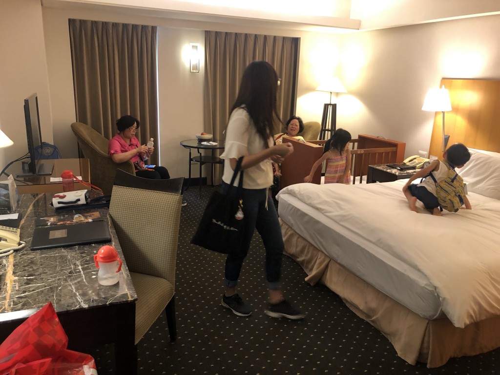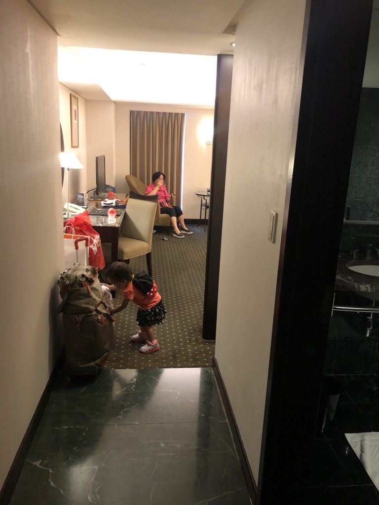 Check in完我們就先進房囉!今日入住B館商務客房一大床的房型,媽媽就在這間先休息一下,晚上當然就是我跟Grace帶小孩來睡一下啦!進門一拍~
