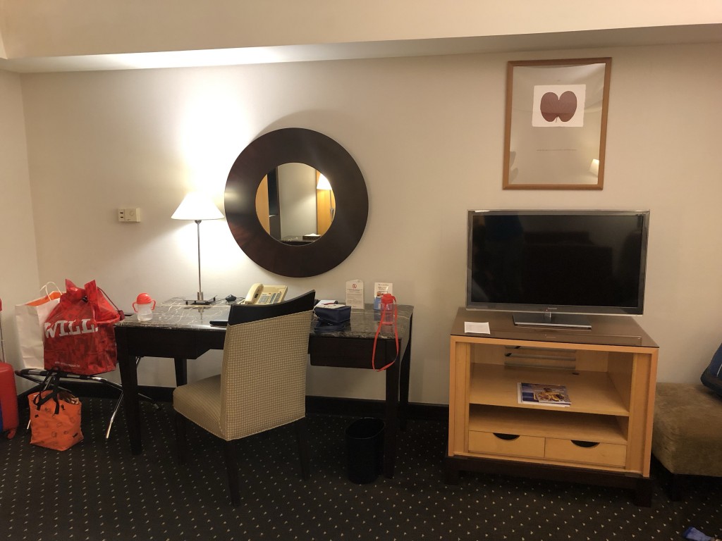 往床尾方向一拍,有書桌(化妝桌)以及電視櫃,電視則置放在電視櫃上