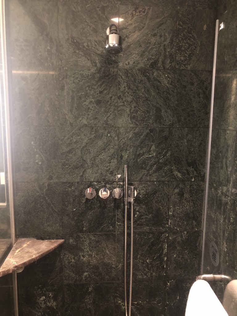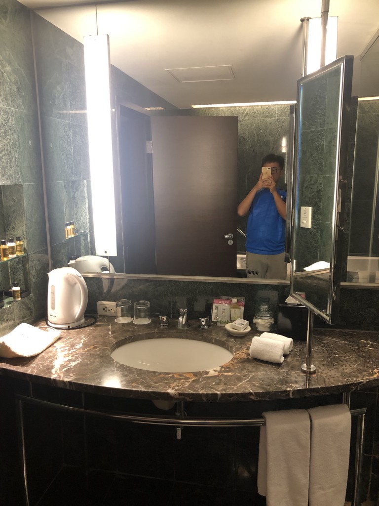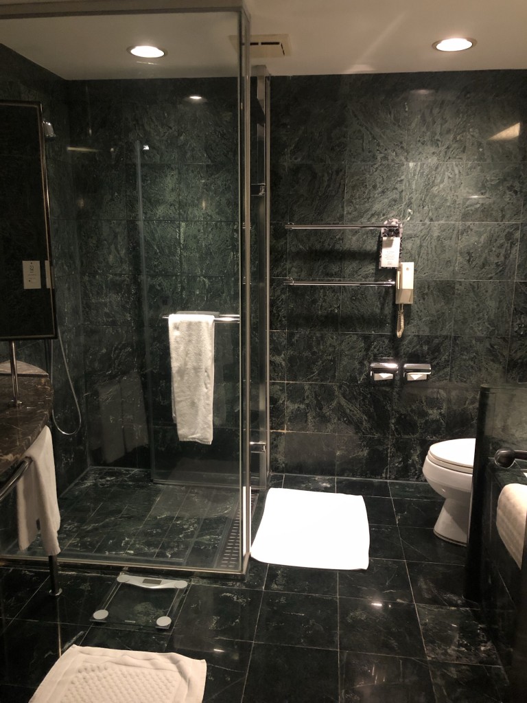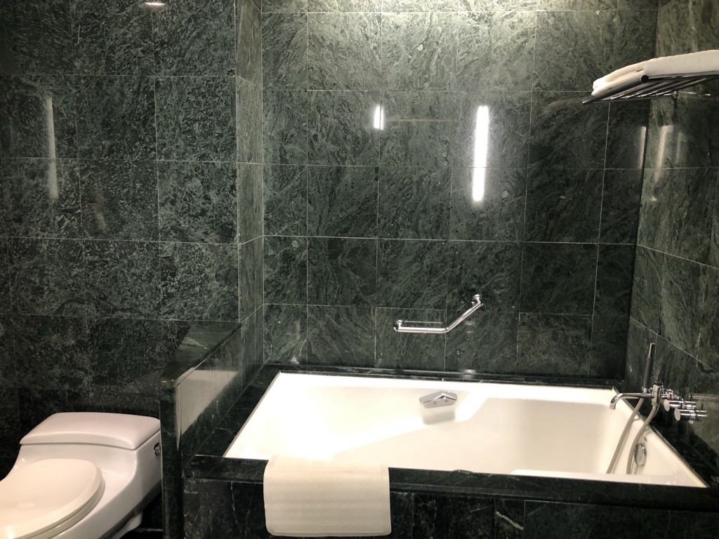 接著來看一下浴室的部分,浴室空間很大算不賴,深綠色大理石算是較老氣不過也有高貴穩重的感覺