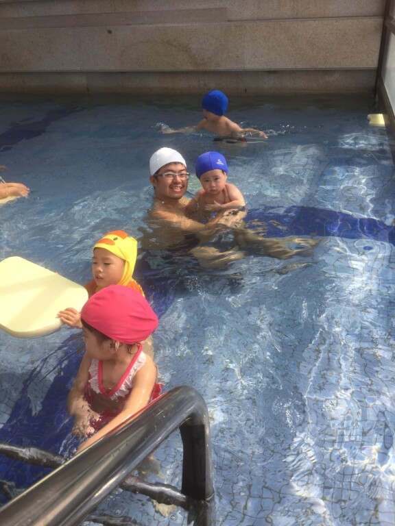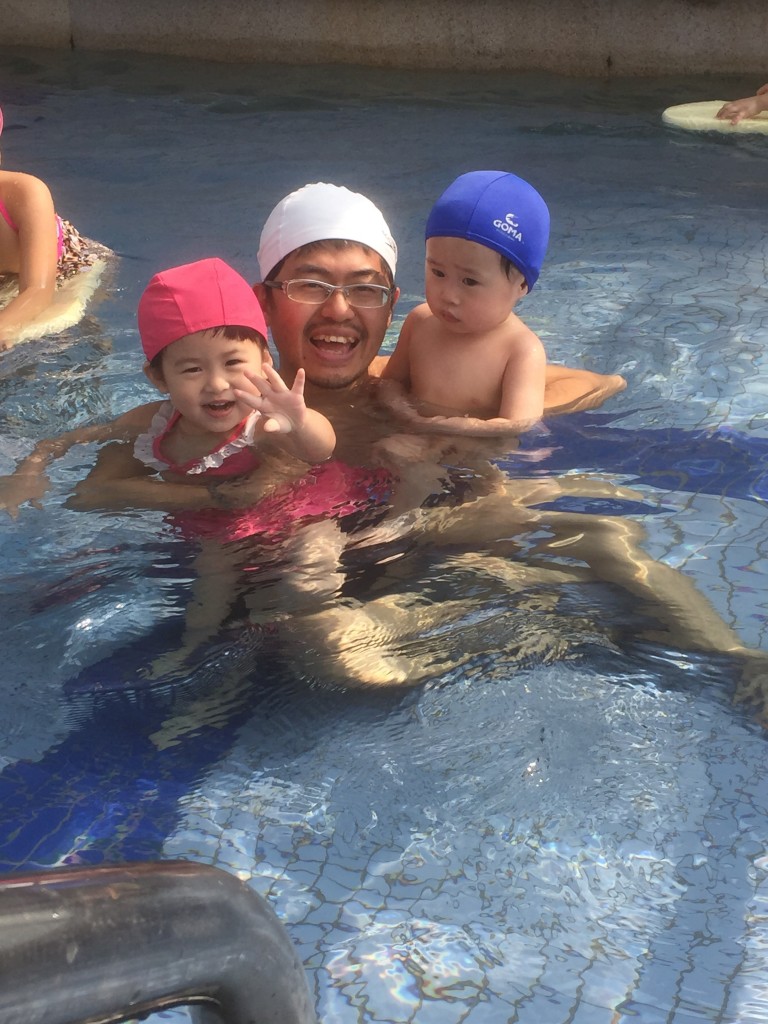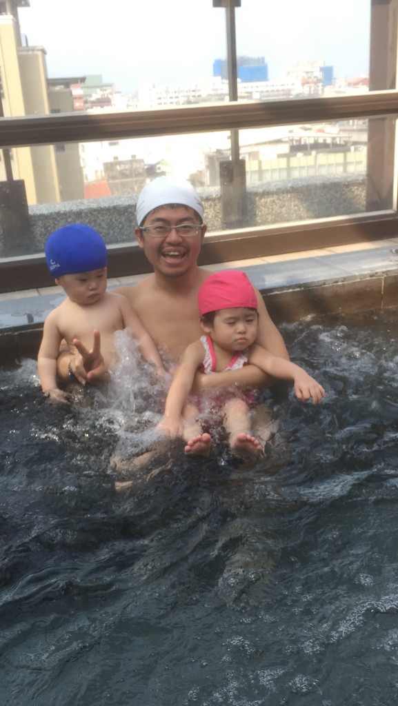 由於飯店房間還沒好,櫃檯建議我們可以先使用設施,當然首先就是來到室內泳池啦(在豐華俱樂部)裡面~~兒童泳池算淺,很多小朋友很開心在游泳~我們這兩隻幾乎是最小的