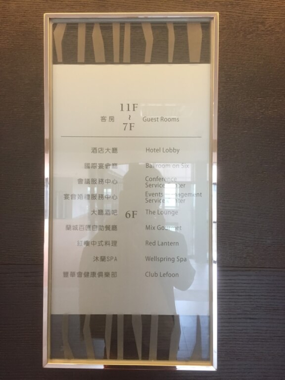 電梯旁有顯示飯店設施配置及樓層