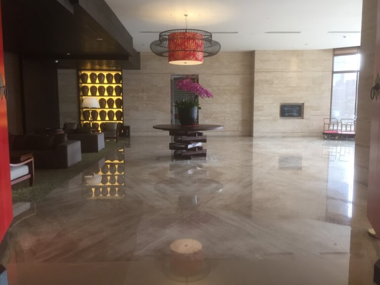 飯店的Check in櫃台在6樓,米黃色大理石地板搭配深胡桃木色裝潢算較保守但經典的配色