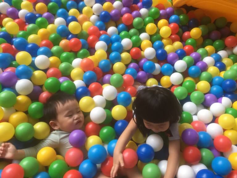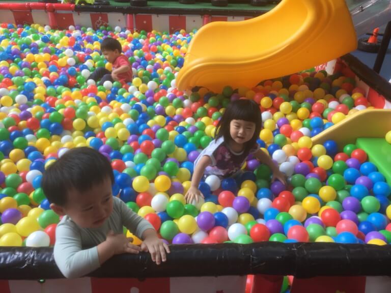 這溜滑梯印象中要5歲還幾公分以上才能溜,看起來挺刺激的,其他小朋友只能在球池玩球