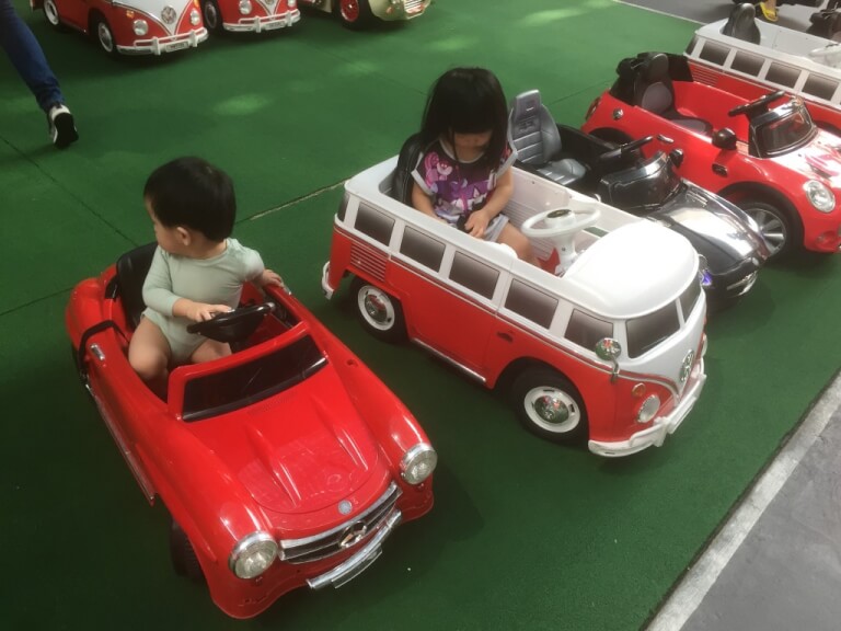 今天兩個寶貝不會開索性就找車子坐著不放><“而且找的不是電動的而是腳可以踩到地上的,smart!