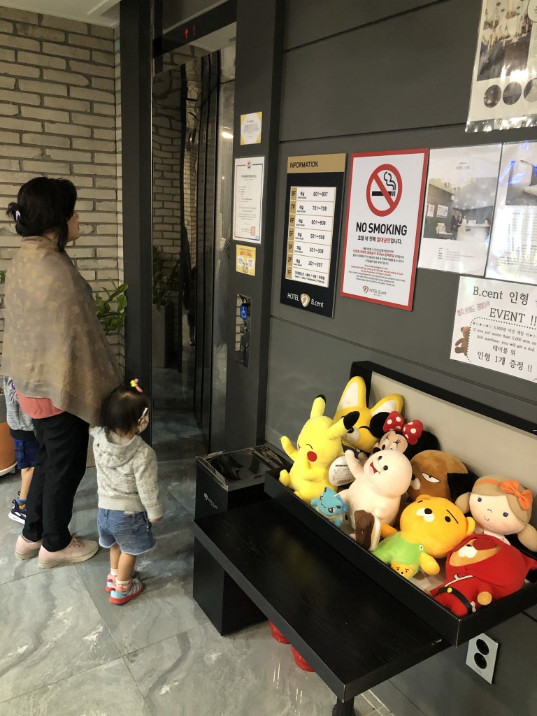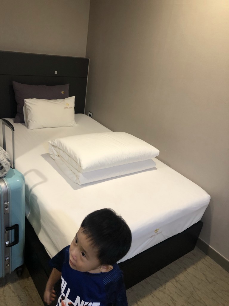 釜山其實就有點類似台灣的高雄,沒有首爾如此繁華,但是也有美美的海,好吃的在地餐點以及平價的住宿,這次我們搭上大韓航空A220-300的飛機來到到釜山機場,下機後我們接著搭機場線到大渚站再轉搭3號線,再從Gupo station(龜浦站)轉KTX火車到釜山站就來到今日入住的飯店-釜山B.cent Hotel啦!今日入住雙床房,一大一小床,小床有靠牆還夠塞下我們3大3小,cool!印象中房間訂起來也是不到1k多不貴,服務人員很Nice沒管我們幾人入住,按往例,先來張開心打卡組合照吧^^