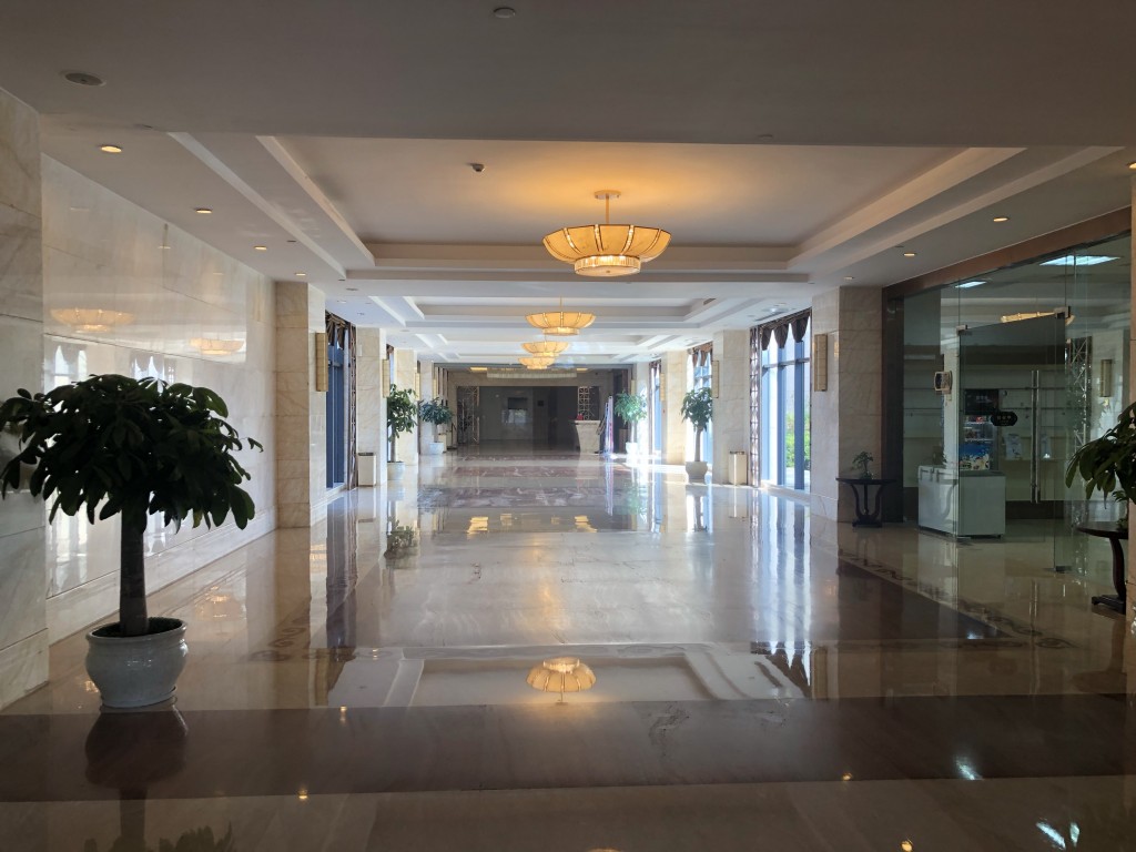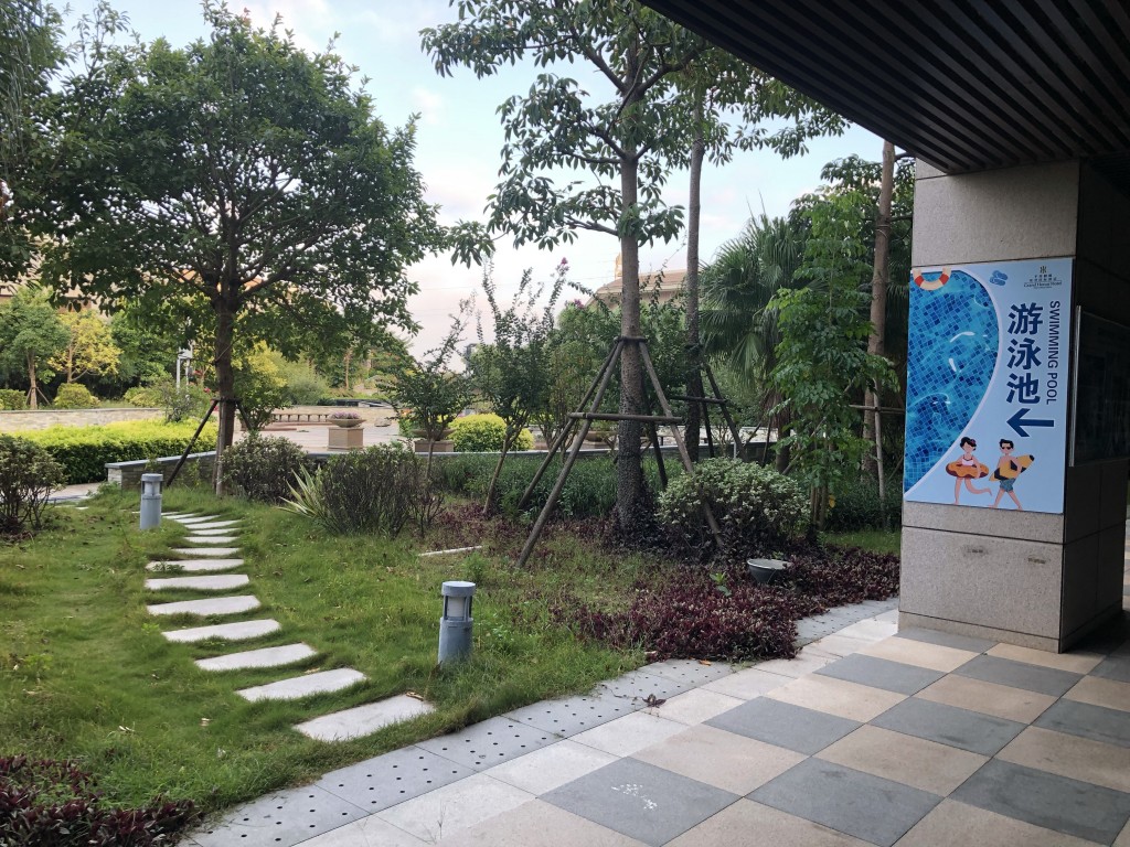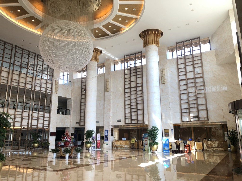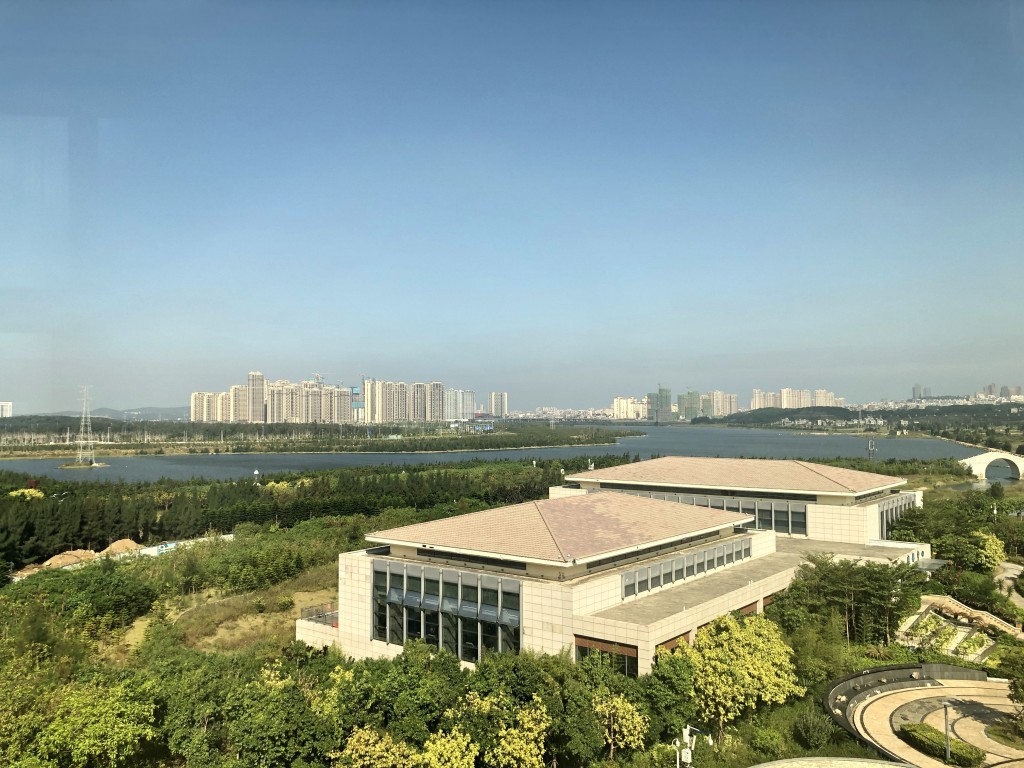 由於飯店大樓在整個綠地中間,下公車後必須再走1公里左右,在中國其實搭計程車不貴(台灣的1/2到1/3價格),不過我習慣搭公車搭配步行順便運動一下就慢慢走囉!