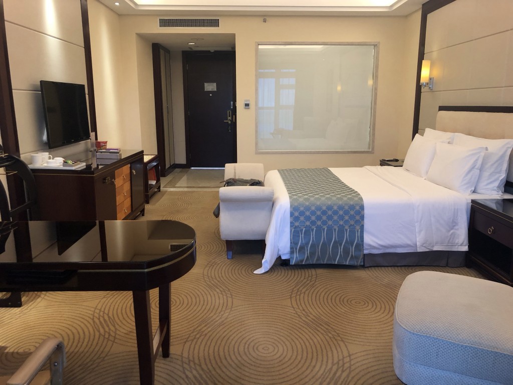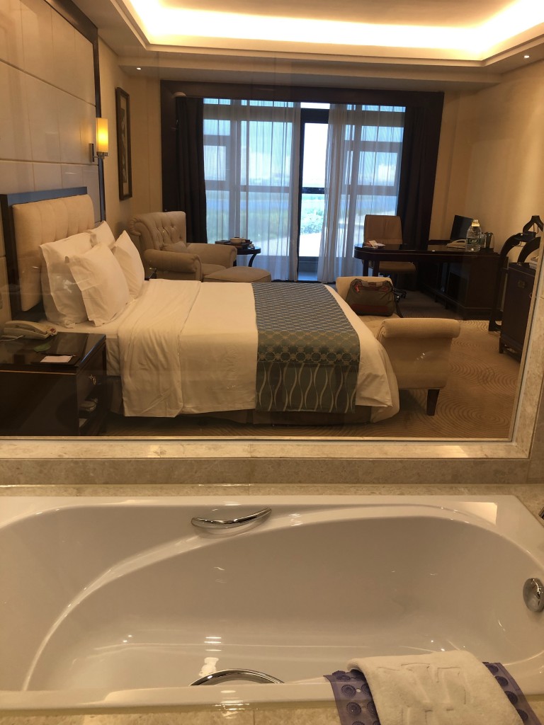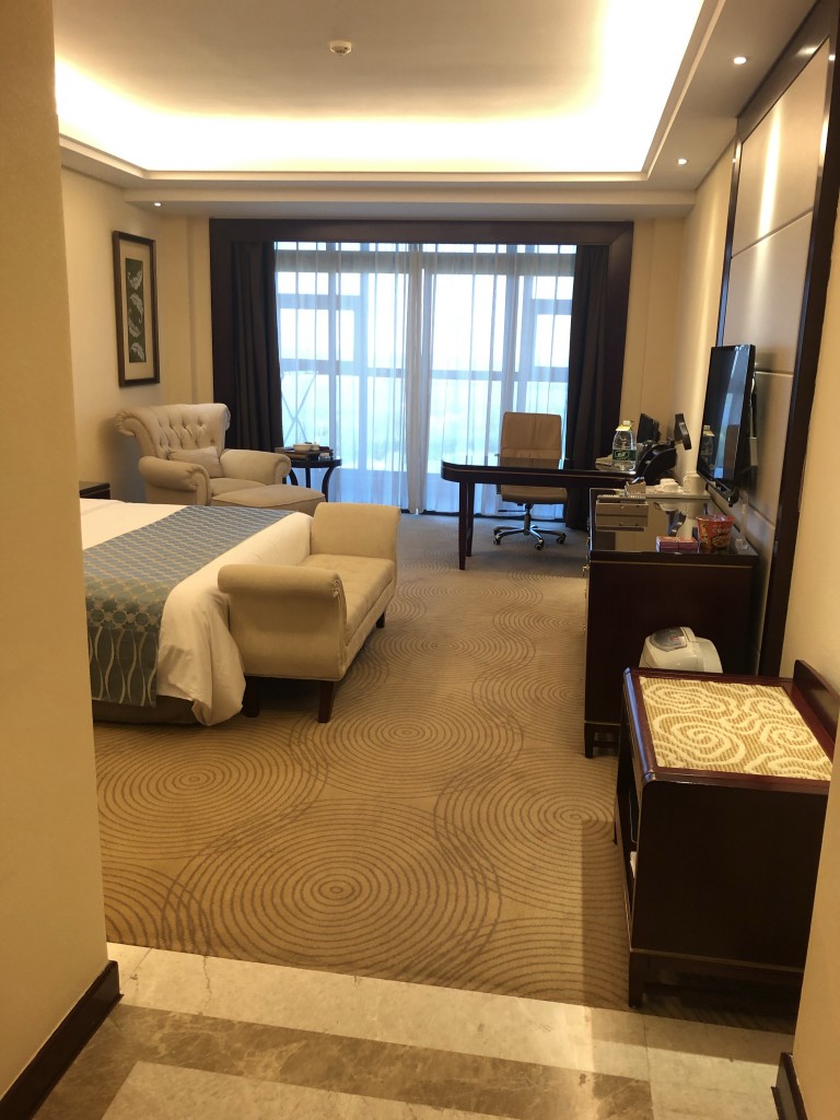 今日從嵐廷明宇豪雅酒店離開後,就搭上平潭9號公車到漁平互通立交橋(東)站(1元人民幣)再走路約1.5公里就來到今日入住的飯店-平潭麒麟榮譽酒店,這間五星級飯店位置較接近郊區,也是一個自己發展的園區度假村的概念,四週綠樹整理的很好,旁邊也有個平潭雕塑園可以走走看看河景與樹景,很適合在飯店放空一整天,辦完Check in手續後,櫃檯也很nice的給了我五樓(最高樓層)面湖的客房,房間約10坪有浴缸及陽台還不錯舒適,good!話說Trip.com訂起來一晚含早餐不用1500真的不貴(我是使用住宿券因此成本更低),這個等級在台灣可能就要3-5k了,按往例,先來張開心打卡組合照吧^^