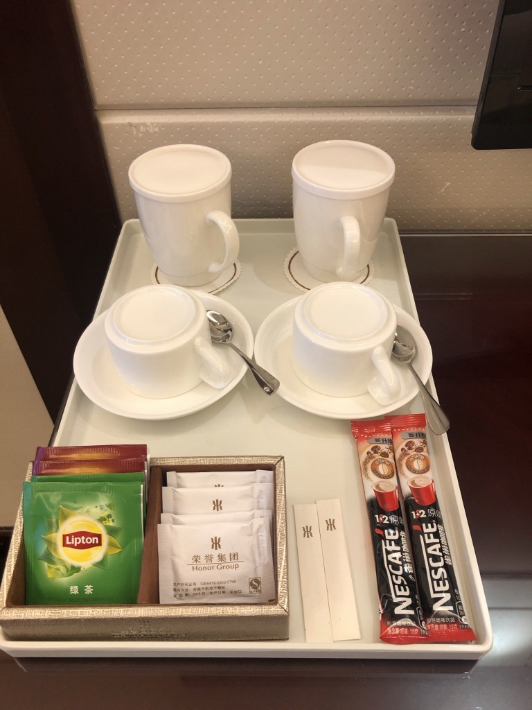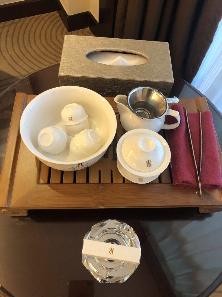 桌上有泡茶器具,飲茶文化在亞洲都還很受歡迎倒是~