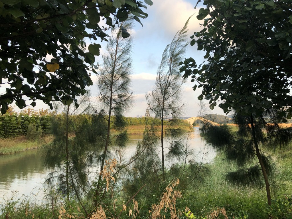 來拍一下陽台外的景觀,一望無際的綠樹與河景,蠻美的!