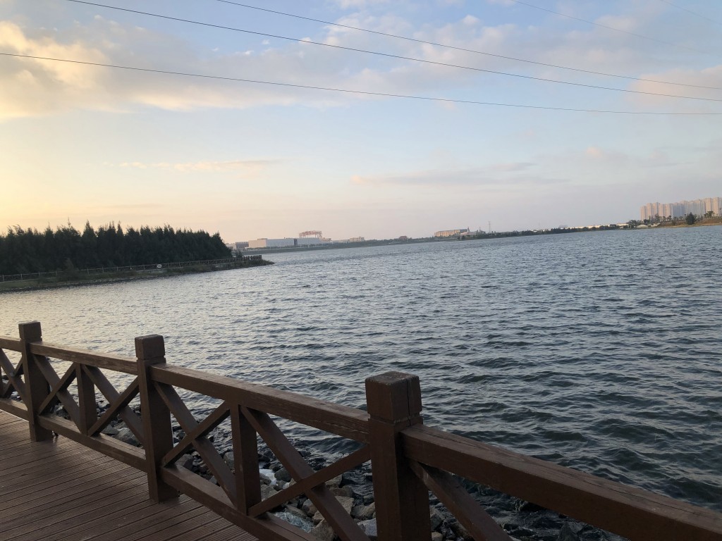 這河的名稱我不太清楚,不過有步道可以走或跑很不錯,這裡週末確實是會有人來這散步的呦!