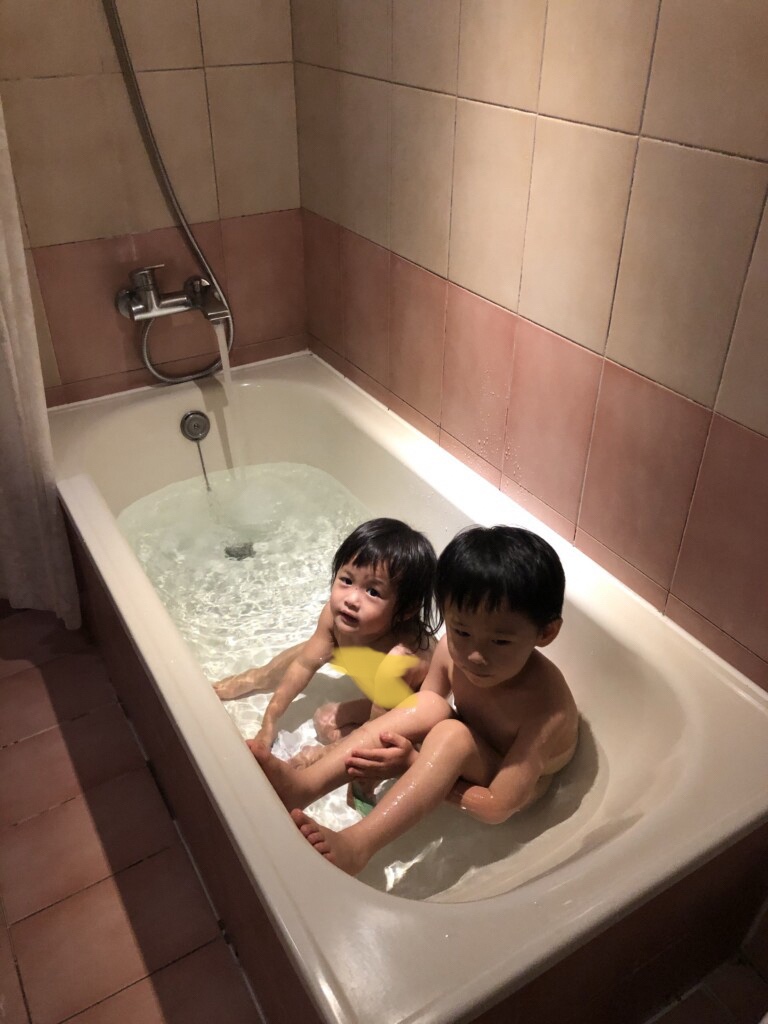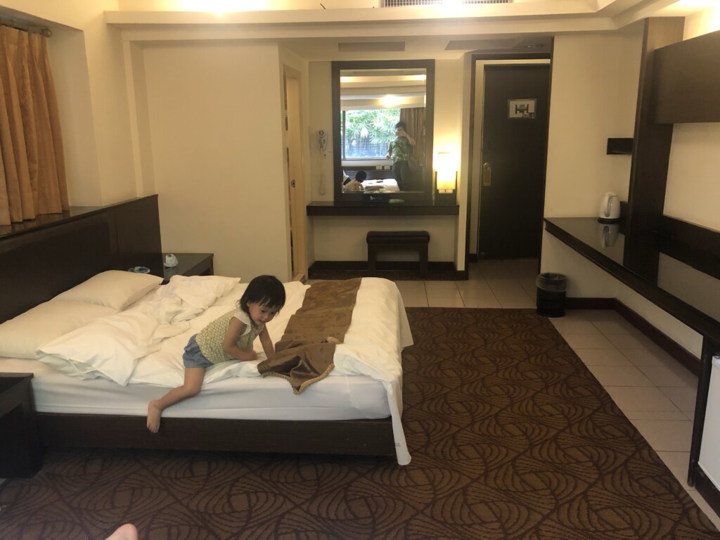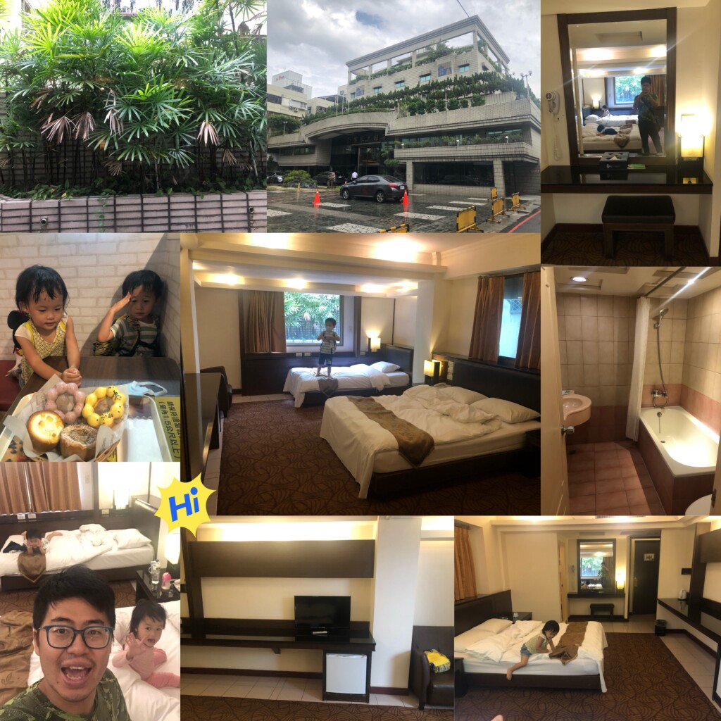 從風信子文旅退房後,讓雙寶在台中市民廣場草地上奔跑放風一下,就帶他們到對面誠品綠園道吃個Mister Donut,接著搭上107號公車到台中第三市場下車,再走路400公尺就來到今日入住的飯店-企業家大飯店啦!這間飯店外觀有點小舊,但還是有一定氣派度,使用Agoda訂房(VIP+a金)後約700元出頭含雙早還行,今日很lucky被升等為三人房,房間寬度算不小應該有9坪舒適度還不賴,浴室也有浴缸可以幫雙寶泡澡,用不到1000元的價格入住算是非常ok的了(還有早餐可以吃),按往例,先來張開心打卡組合照吧^_^