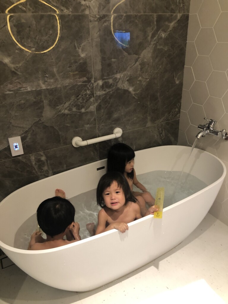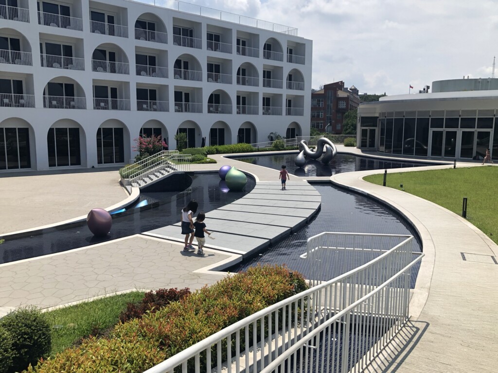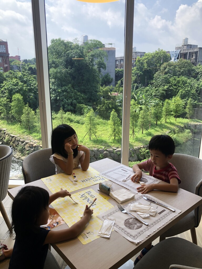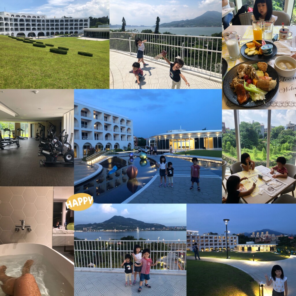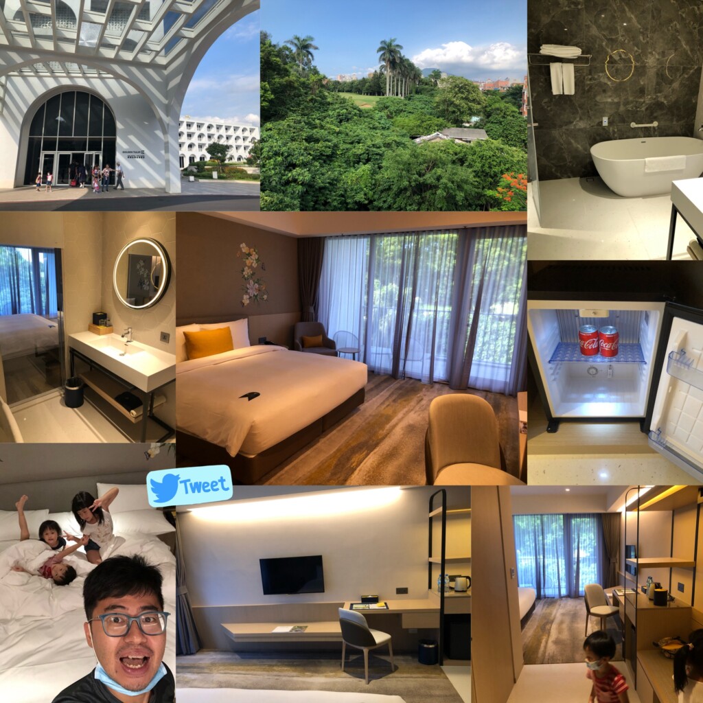 從雪霸國家公園搭101B公車到苗栗高鐵站後,接著就搭高鐵回板橋站,經過江翠站跟Grace接來茉莉後,就搭捷運到淡水站,接著轉搭接駁車約10分鐘就來到今日入住的飯店-淡水將捷金鬱金香酒店啦!飯店於2019年開幕很新,鄰近禮萊廣場、滬尾藝文休閒園區,附近也有一些淡水的景點還不錯,這次使用住宿券假日入住標準房一大床含早餐成本不到2k還行,房間有陽台浴缸可以讓三寶泡澡很不錯,大小大約11坪也不錯舒適,窗外綠樹搭配好天氣也是非常療癒,good!先讓三寶午睡一下晚點帶他們去覓食並走逛一下園區吧!按往例,先來張開心打卡組合照吧^_^