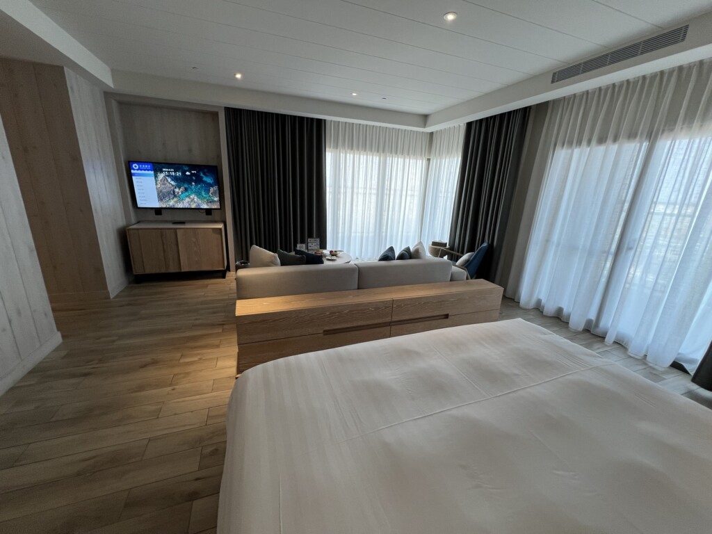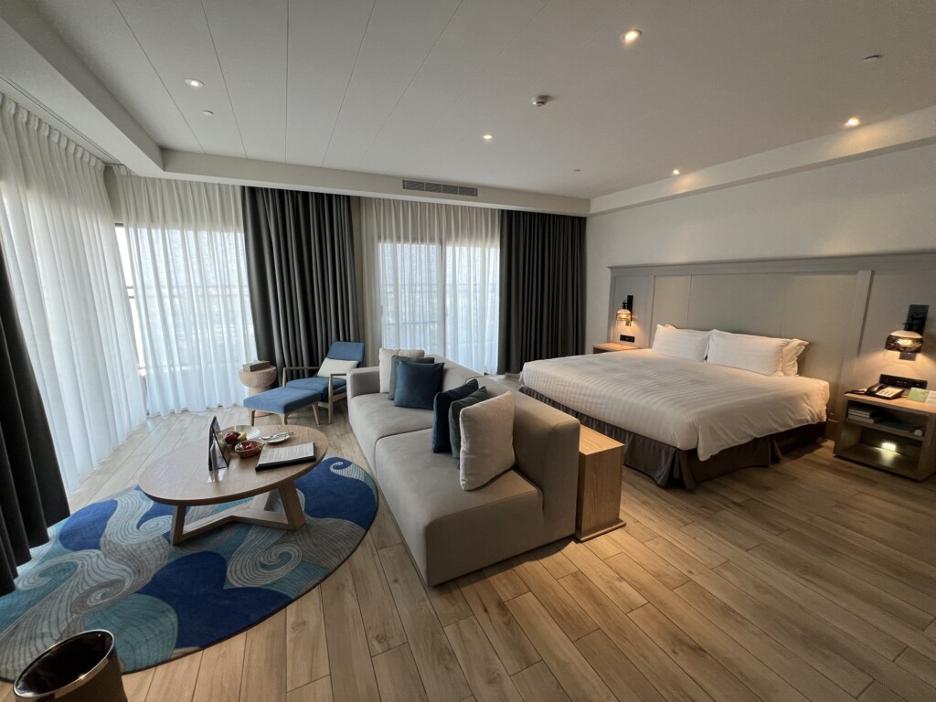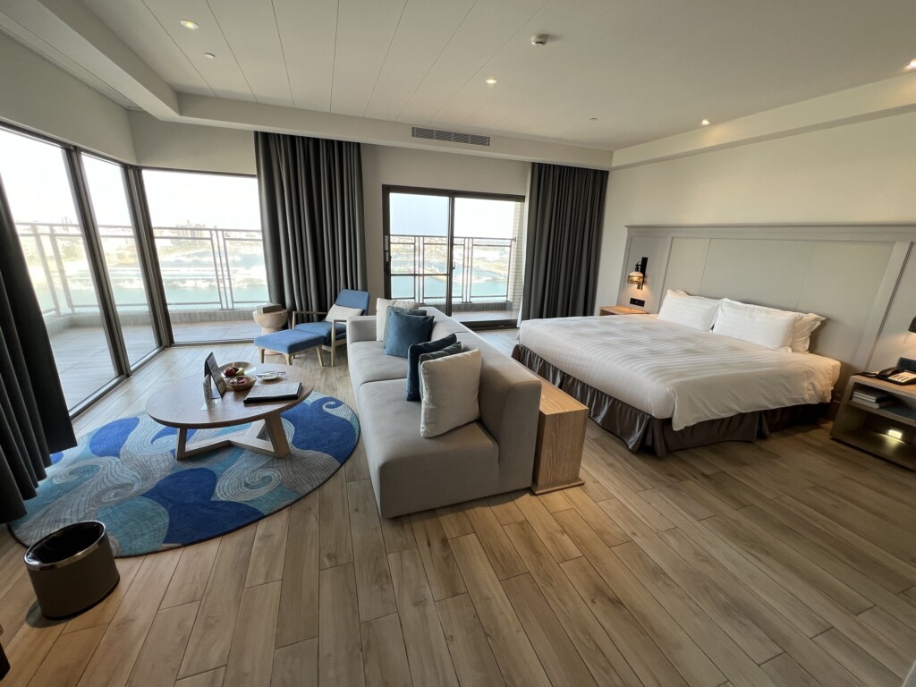 澎湖最棒的兩間飯店就是澎澄飯店和福朋喜來登,這兩間飯店相比澎澄整體還是較新一些整體空調系統也較優,而且旁邊就是Pier3 號港免稅店可以逛,離市區也較近一些,其餘部分基本上是各有千秋,入住澎澄飯店會有免費接駁的服務,記得要跟飯店預約呦!澎澄飯店行館區基本上不是特別一棟而是套房的概念,由於上次帶媽媽跟Molly、Cathy入住璀璨行館覺得很棒,這次就來入住比璀璨行館低一階但還是超棒的澄曦行館來體驗一下啦!