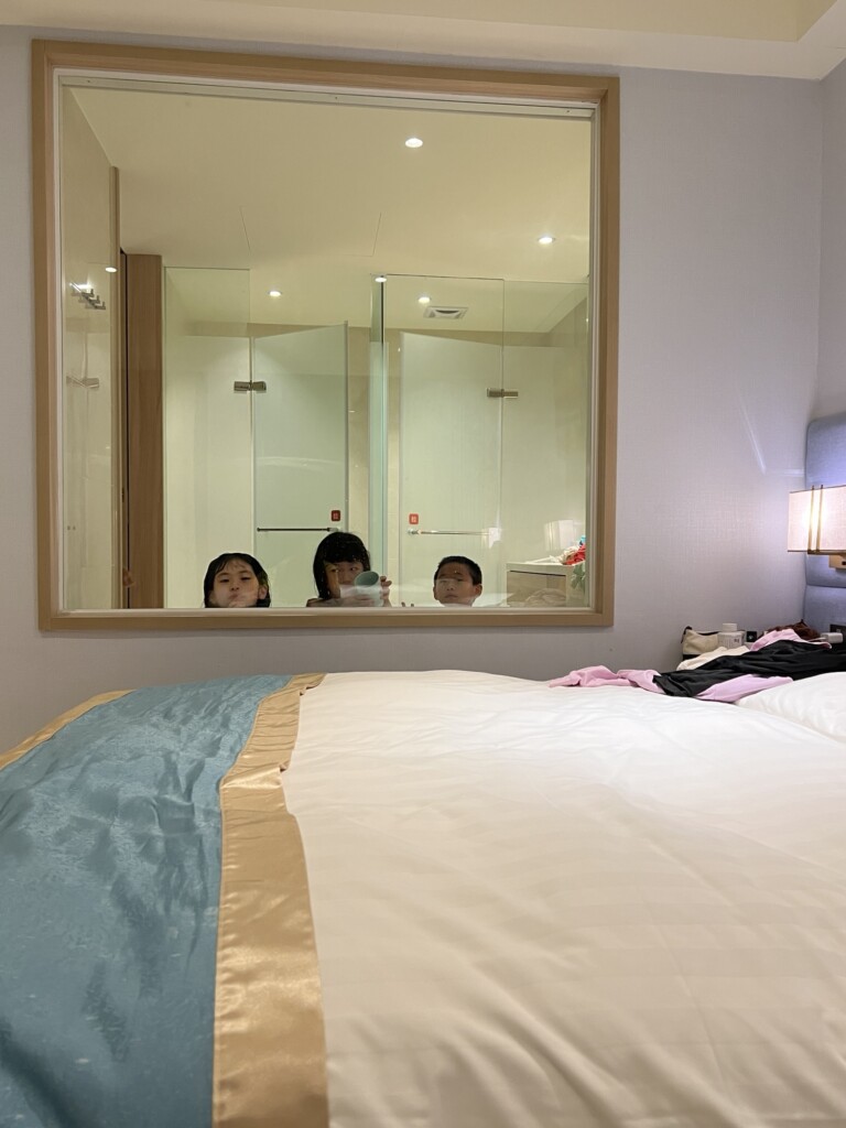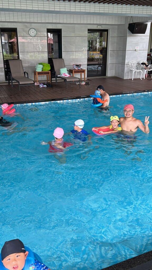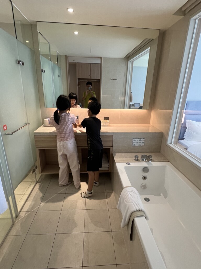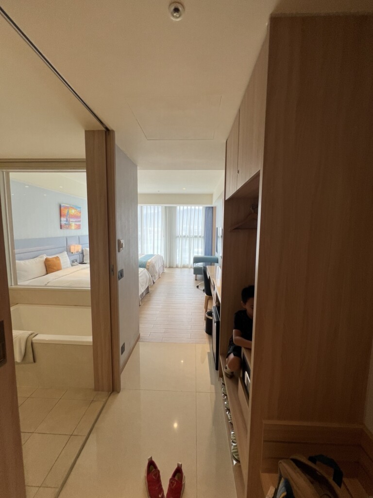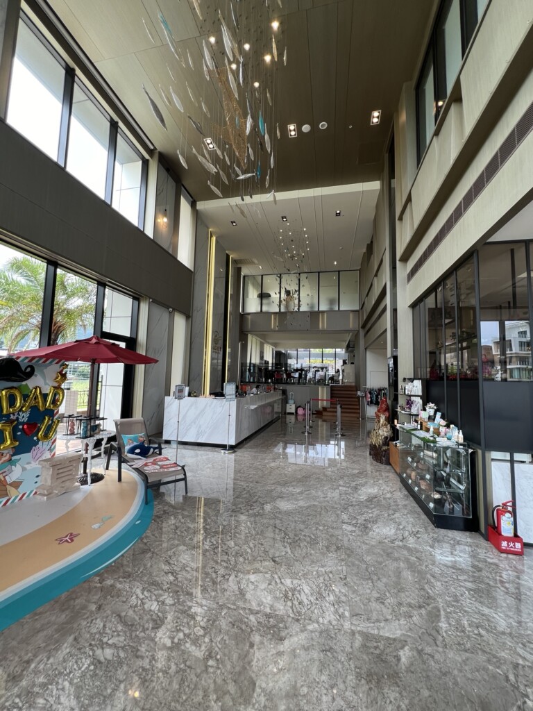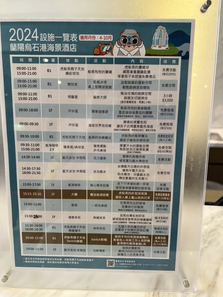 由於之前網路上有買到5000住宿+2000餐飲的券,官網上看到一個升等四人房含早餐方案5600,因此就來開心入住啦!今日入住山景四人房,房間含陽台約10坪空間還算舒適,房間很新質感很好,兩中床房型入住兩大三小基本上還行,窗外山景(一點點海景)還算蠻美的,浴室有浴缸可以泡澡(還可以享受牛奶浴)很不錯,飯店有泳池也有遊戲室,晚上的泳池還有播放電影,遊戲室裡面還有switch可以玩,非常適合親子同樂,飯店晚餐不便宜,不過如果要便宜可以到頂樓「星空看海吧」去吃簡餐,飯店早餐也還蠻豐盛的,用餐環境也不錯,服務人員整體態度都還蠻好的,入住時1樓還可以拍照(傻瓜相機洗照片出來那種),按往例,先來張開心打卡組合照吧^_^