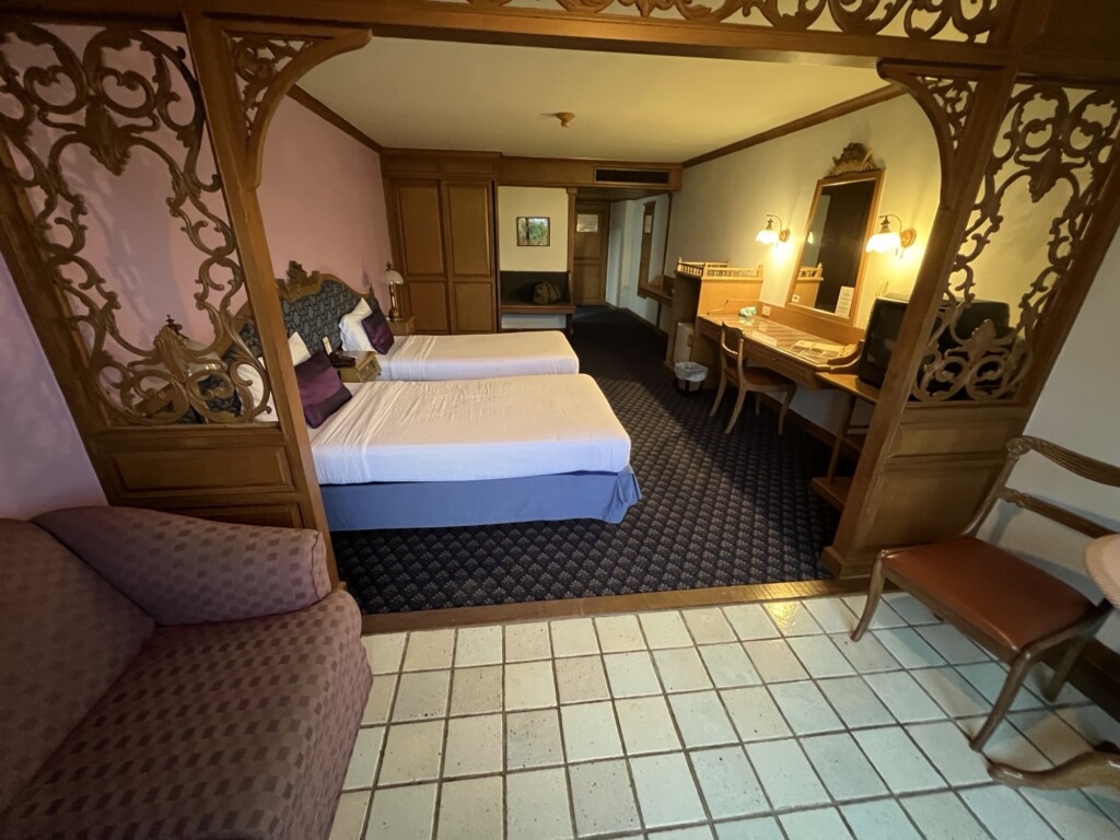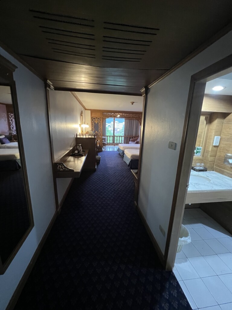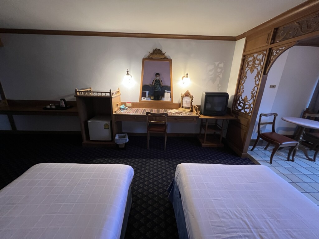 清邁蓮花飯店歷史悠久房間有點舊,不過規模不小大廳也非常氣派,今日入住雙床房7xx元不貴,房間約10坪非常寬敞,陽台外推山景的景觀很棒(剛好可以用來辦公),浴室有浴缸可以泡澡也很好,就是房間舊了些,飯店也有泳池與健身房等設施,整體也算CP值不錯,分享飯店房間照片給大家^_^