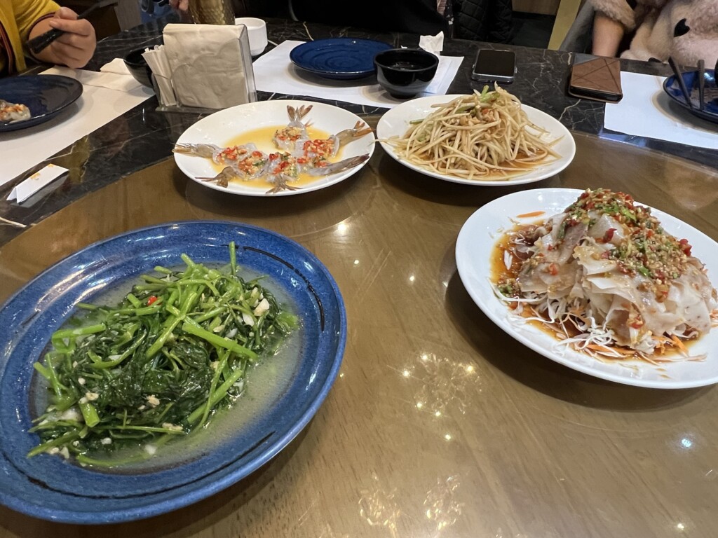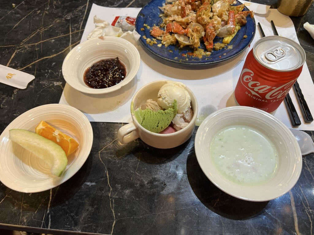 這間餐廳吃到飽是使用點餐型的,點完餐後由服務人員送餐,不用跑來跑去也非常舒適,這次點了兩輪(一次8盤),點了月亮蝦餅、清蒸檸檬魚、雲南大薄片、涼拌生蝦*2、椒麻雞、酥炸松阪、香酥檸檬魚、泰式咖哩炒蟹、蝦醬空心菜、蝦醬高麗菜、泰式酸辣海鮮湯、…共17盤,搭配哈根達斯冰淇淋與泰奶、可樂、椰汁西米露以及椰漿黑糯米等吃起來應該比單點優惠一些,整體餐點還不錯吃,全部17盤剛好掃光,再吃個哈根達斯與甜點晚餐就可以省掉了,服務人員感覺幾乎都是外籍,不過整體服務態度是不差的,用餐環境也蠻好的,以下是照片分享~