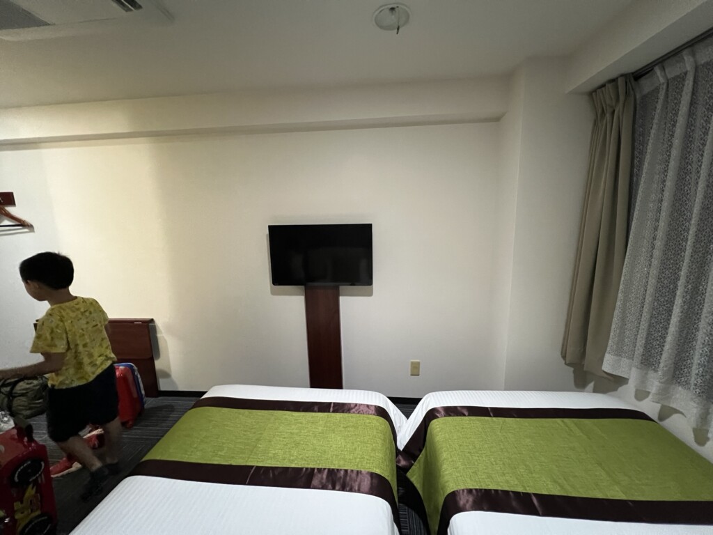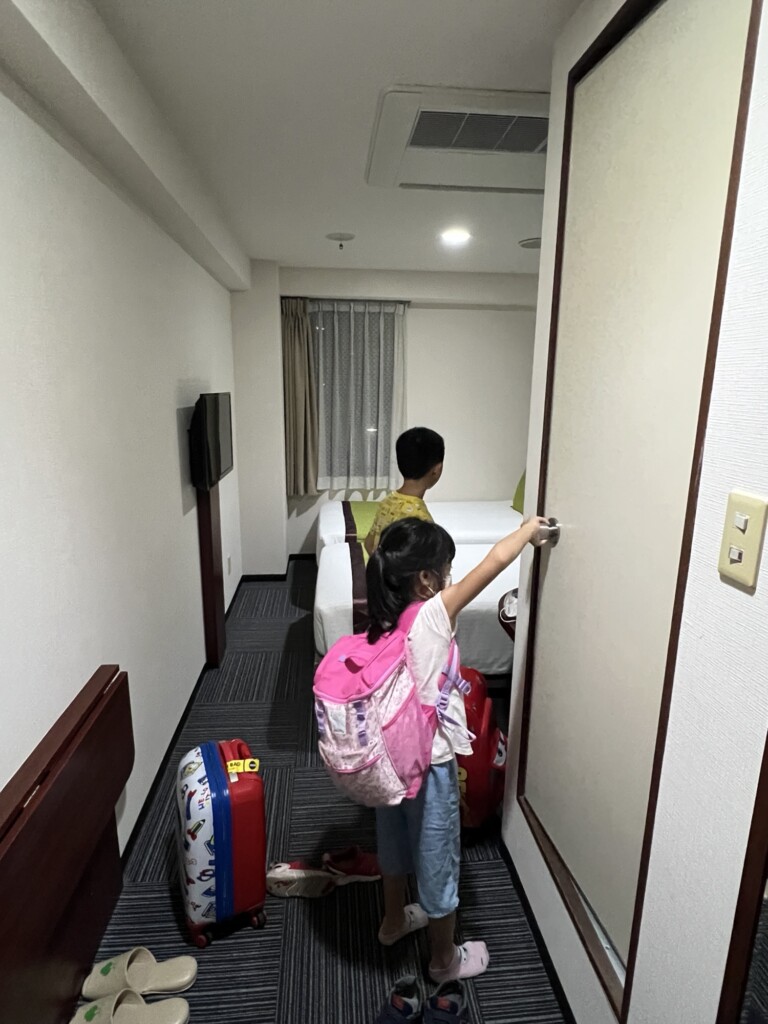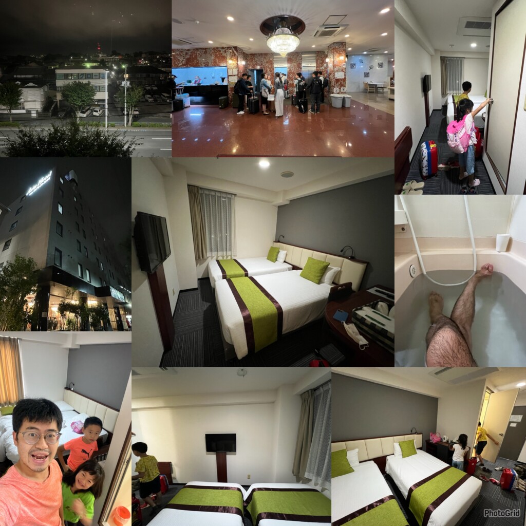 這次預訂了兩間兩小床的房型(含早餐),使用Agoda訂下來128x*2=25xx不貴還不賴,房間約6坪不大,兩小床房型睡1大1小或1大2小勉強還行,房間乾淨度還OK(不過有人反應床單有點癢XD),整體有稍微更新過,空調也不太吵冷氣也會冷,隔音的部分中等,我們這次入住都沒有被影響到,基本上以這個價格入住在日本絕對划算,第一天剛到日本或隔天要搭機離開的朋友可以優先考慮(如果價格不貴的話),按往例,先來張開心打卡組合照吧^_^