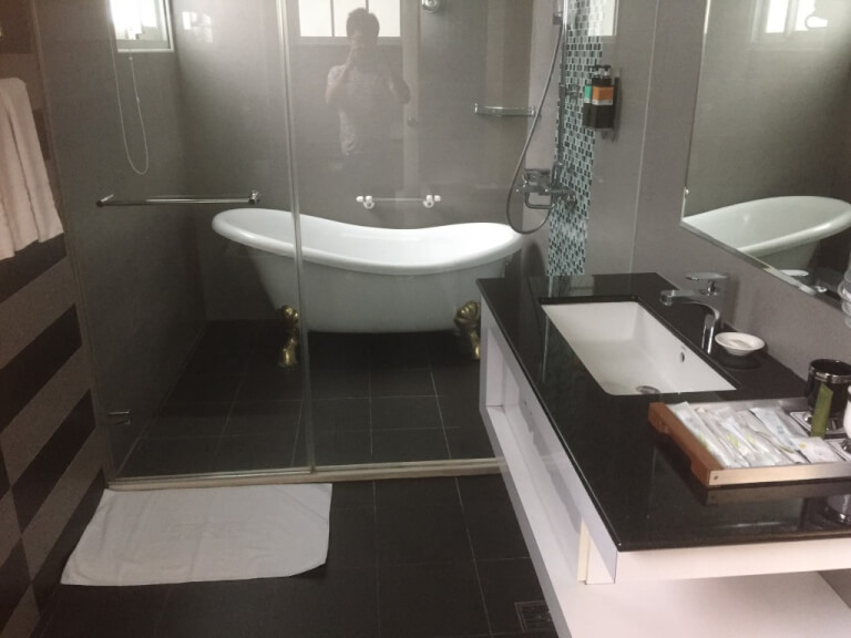 浴室一拍,還蠻大一間的,前方呈浴缸流線型,泡起來基本上舒服的