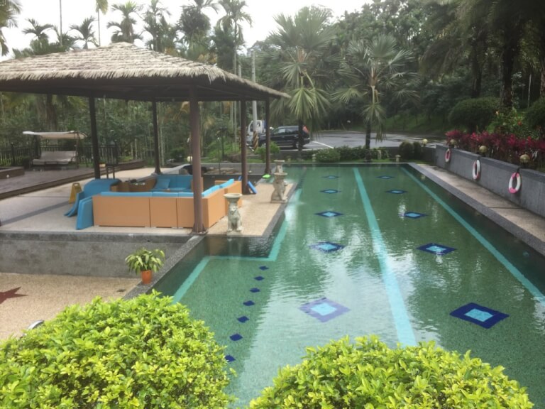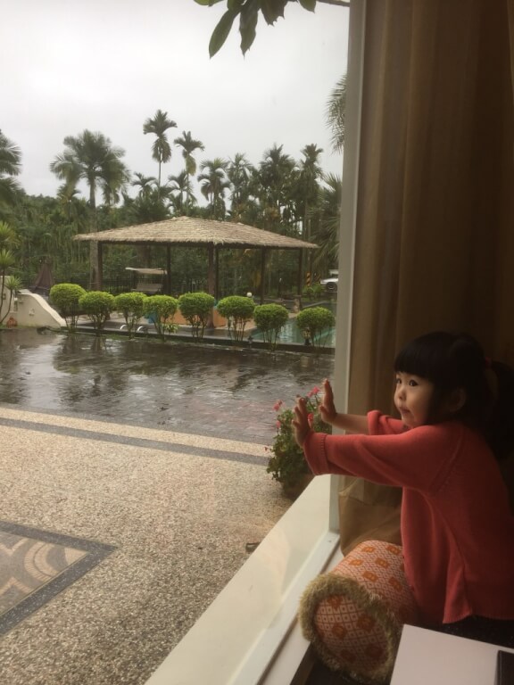 可惜天氣不好,要不然應該要在泳池游泳一下了!旁邊休息區有沙發可以坐,在這聊天打屁呼吸芬多精應該很不賴~