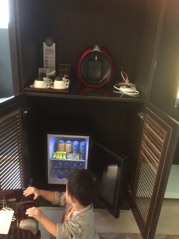 膠囊咖啡機,冰箱裡飲料礦泉水都可以自由享用~很不賴!