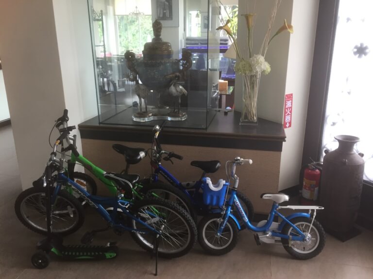 這家民宿也算好睡,早上起床後就到1樓大廳(客廳)準備享用早餐嚕! 好多腳踏車茉莉跟哈弟一直想騎,早餐都不想吃了Orz
