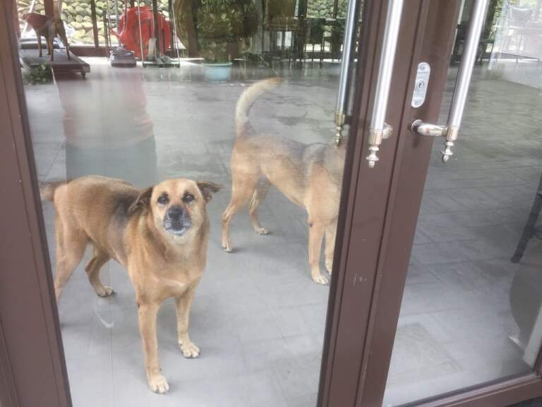 兩隻狗狗被所在另一棟,看起來有點兇的感覺XD