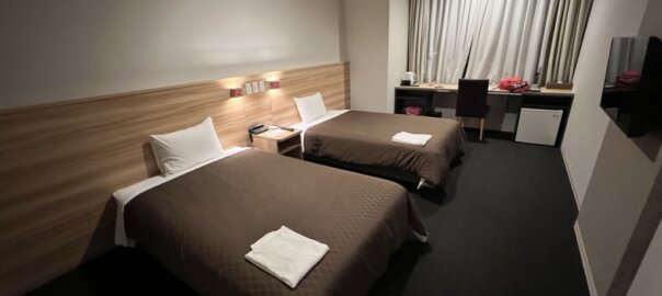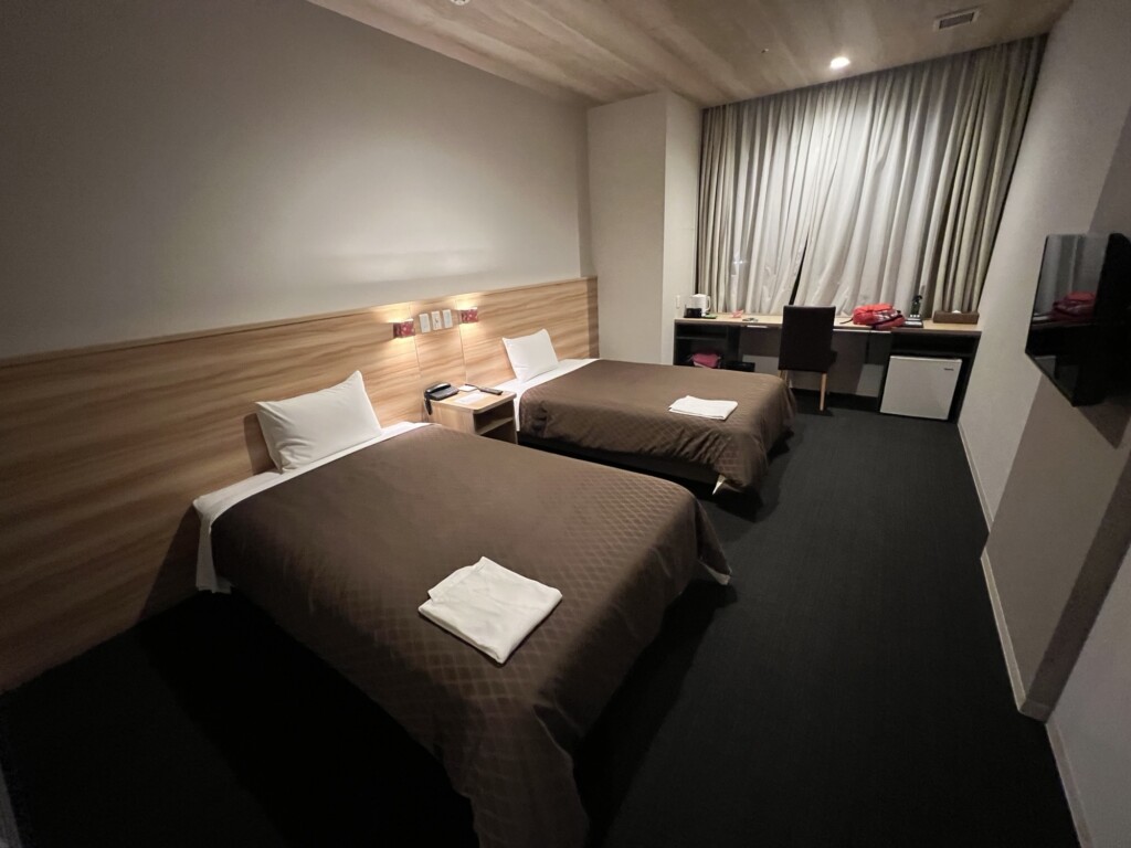 今日使用住宿券訂了兩間房間,房間約有9坪還不小,雙床房寬度約110到120公分還算寬,房間有更新過還行,浴室也有浴缸可以泡澡,今天被升等到最高樓層還不賴,窗外景觀非常美,服務人員態度也很好,早餐基本上還行有一定的水準,而且飯店有提供接駁車到關西機場非常棒(建議參考官網),缺點是似乎因為滿房網路非常慢,不過整體還算滿意,分享飯店房間照片給大家^_^