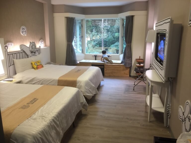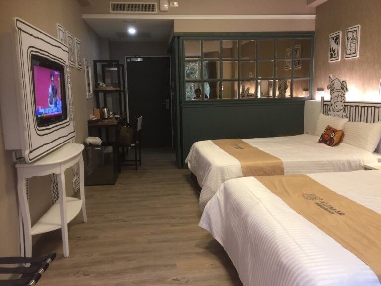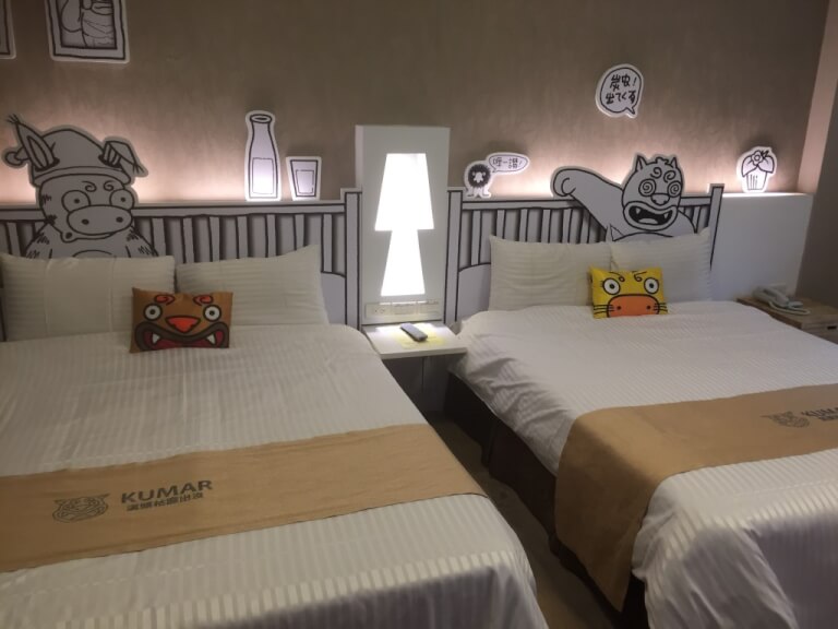 進房啦~~有更新過的房間還不賴,兩大床房型,充滿著枯麻的風格,也不會有舊的感覺