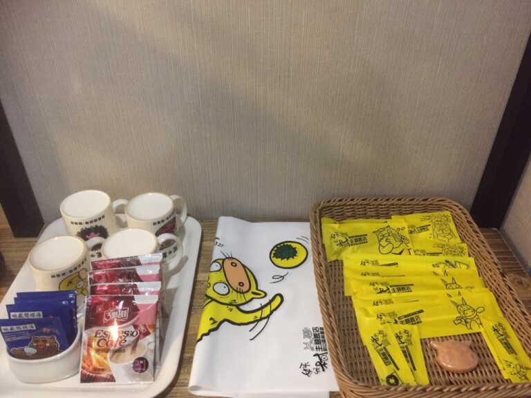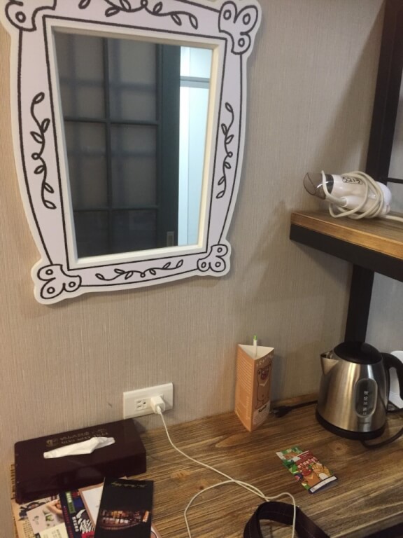 迷你吧有熱水壺及衛生紙,鏡子也包裝的很可愛