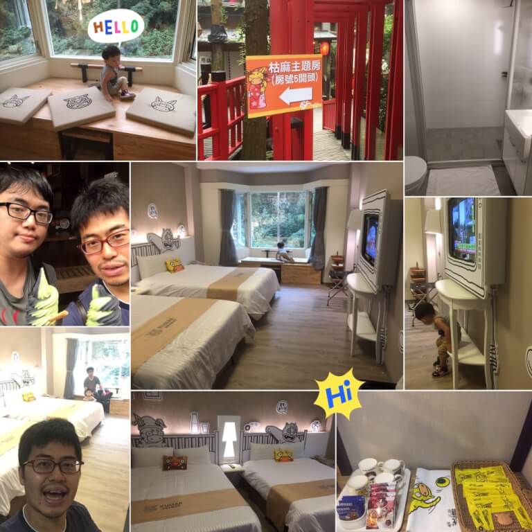 這次入住溪頭妖怪村飯店印象還不差,櫃檯服務算是中等而且客房蠻舒適的(兩大床且更新過),當然浴室的部分較簡單就沒辦法啦,設施的部分有兒童遊戲室算不差,個人認為5歲前的小孩都很適合,另外整個妖怪村走走繞繞吃吃喝喝都很適合親子小旅行,我們帶1歲多的哈弟都沒啥問題,只是如果要去溪頭遊樂區就不方便啦,晚餐好吃度還ok,價格大約也是1人500跑不掉(看怎麼點),早餐的餐點也算不差,因此算是還不賴的主題飯店啦! 推薦給大家~~~