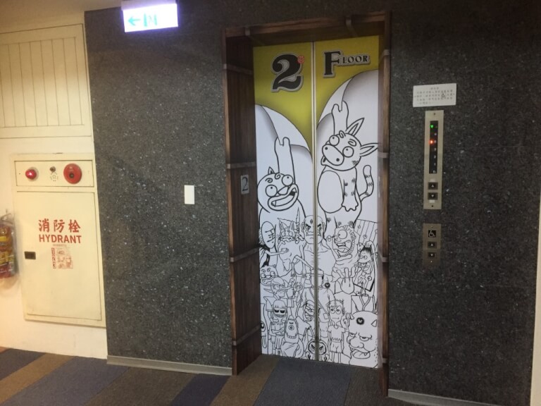 門口旁的電燈與空調~都有可愛妖怪的圖案