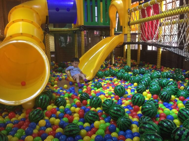 球池可以讓小孩們溜滑梯及玩球,還有很多西瓜球呦~~