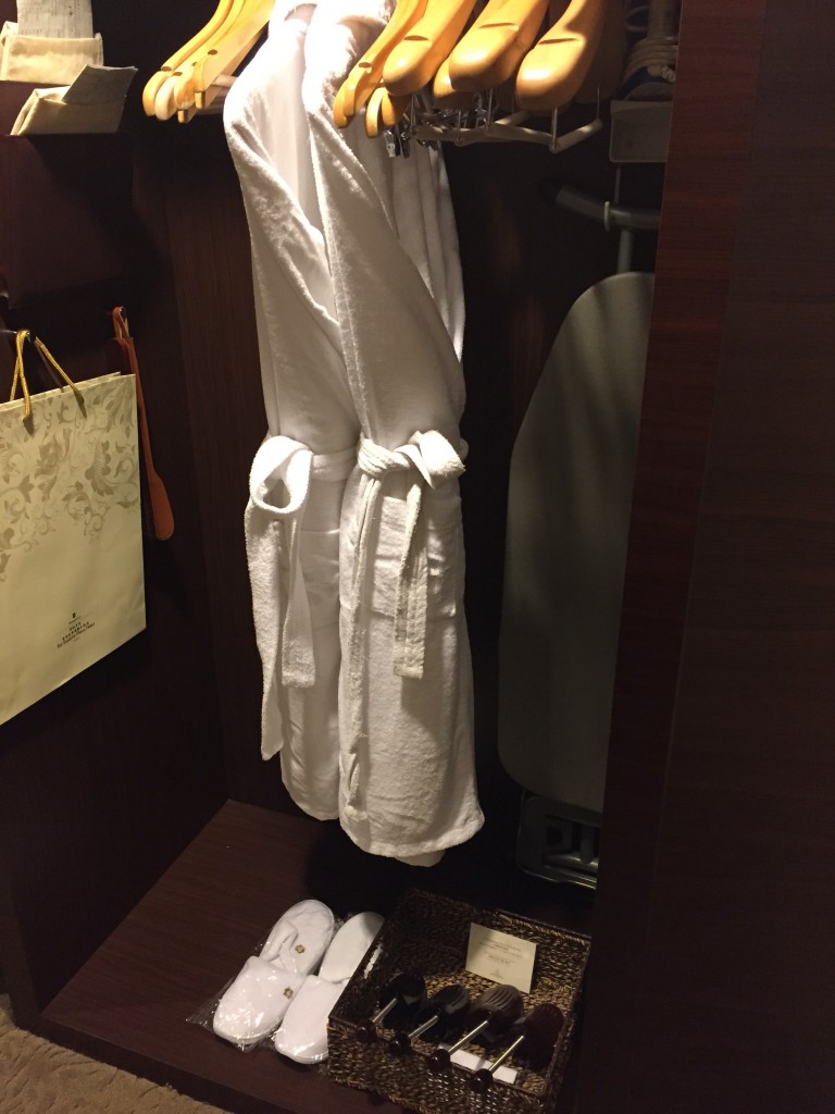 衣櫃裡面有浴衣、拖鞋、還有香格里拉的袋子